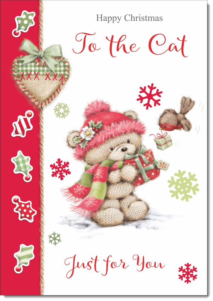 To The Cat Christmas Card Cute Bear on Parcel