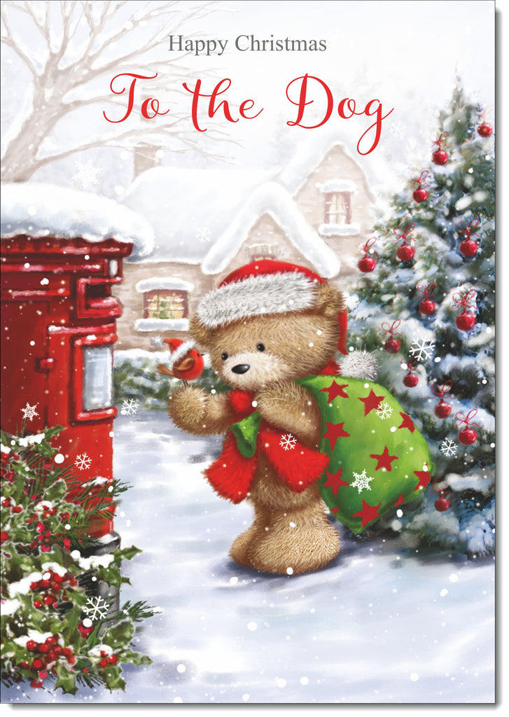 To The Dog Christmas Card Cute Bear at Post Box