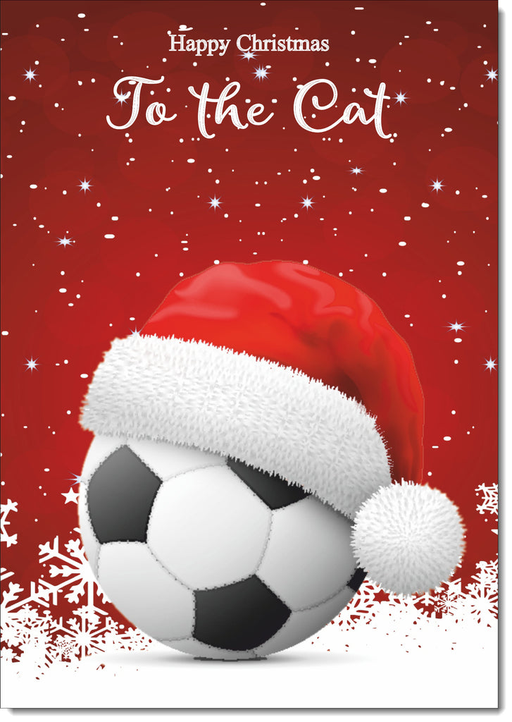 To The Cat Christmas Card Santa Hat Football with Red Sky