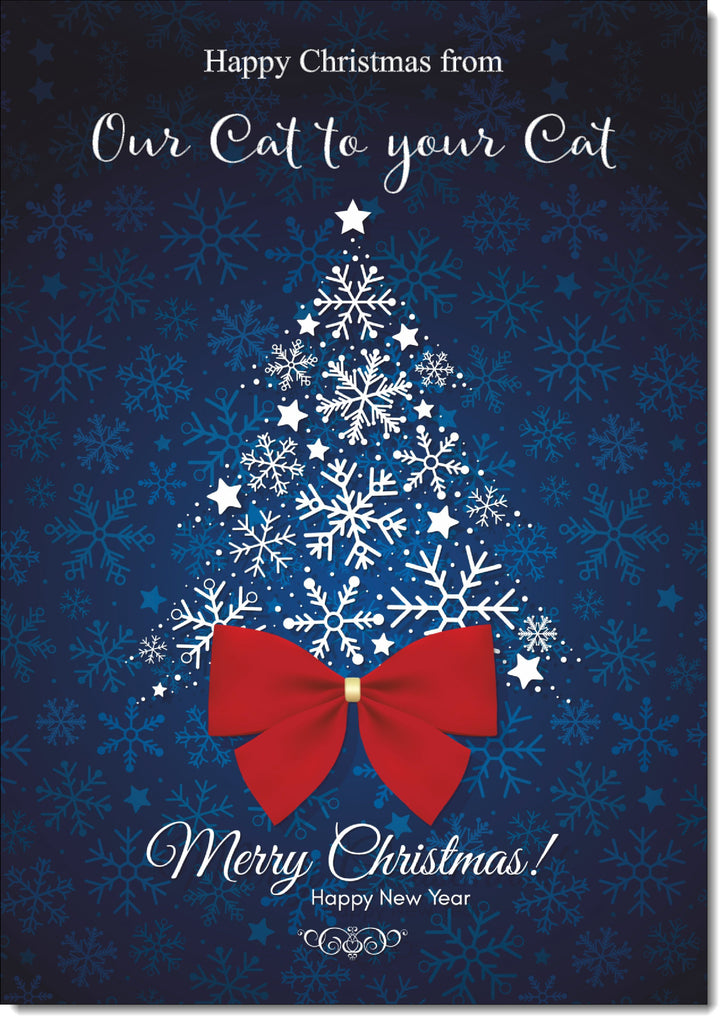 Our Cat To Your Cat Christmas Card Blue Abstract Christmas Tree