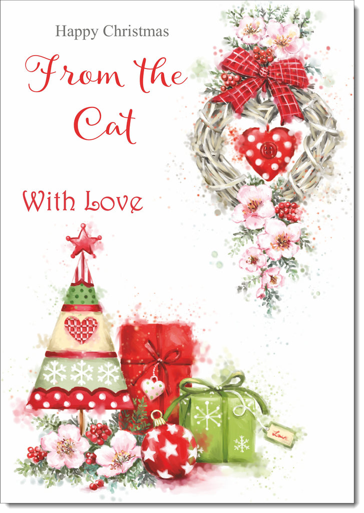 To The Cat Christmas Card Christmas Tree and Parcels