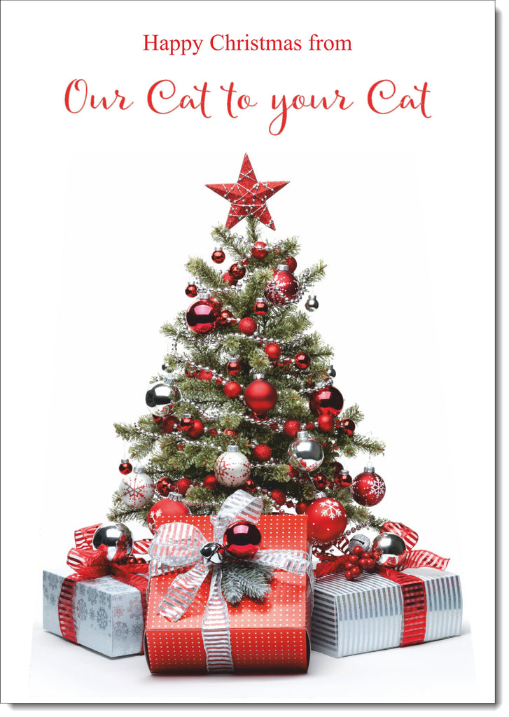 Our Cat To Your Cat Christmas Card Christmas Tree and Parcels