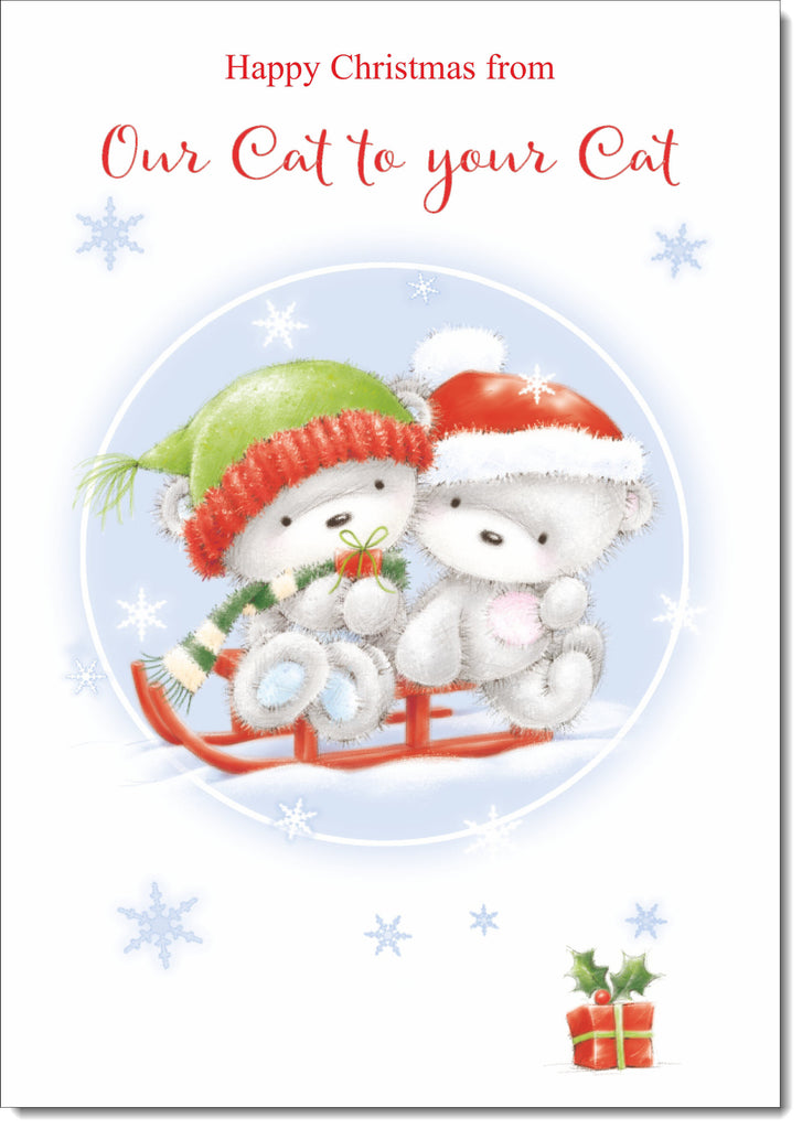 Our Cat To Your Cat Christmas Card Cute Bears on Sled