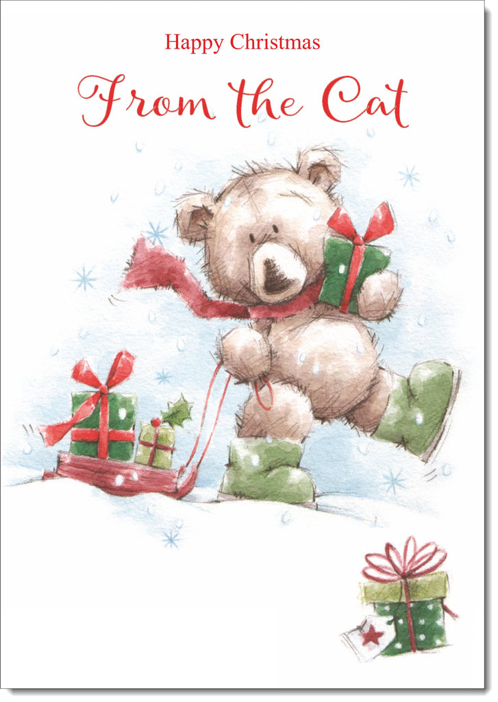 From The Cat Christmas Card Cute Bear with Sled