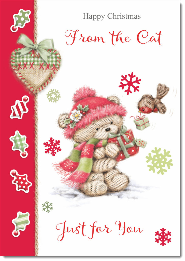 From The Cat Christmas Card Cute Bear in Pink Bobble Hat
