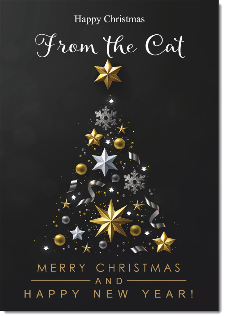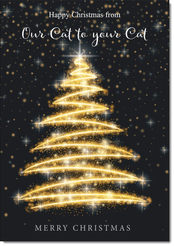 Our Cat To Your Cat Christmas Card Black and Gold Abstract Tree