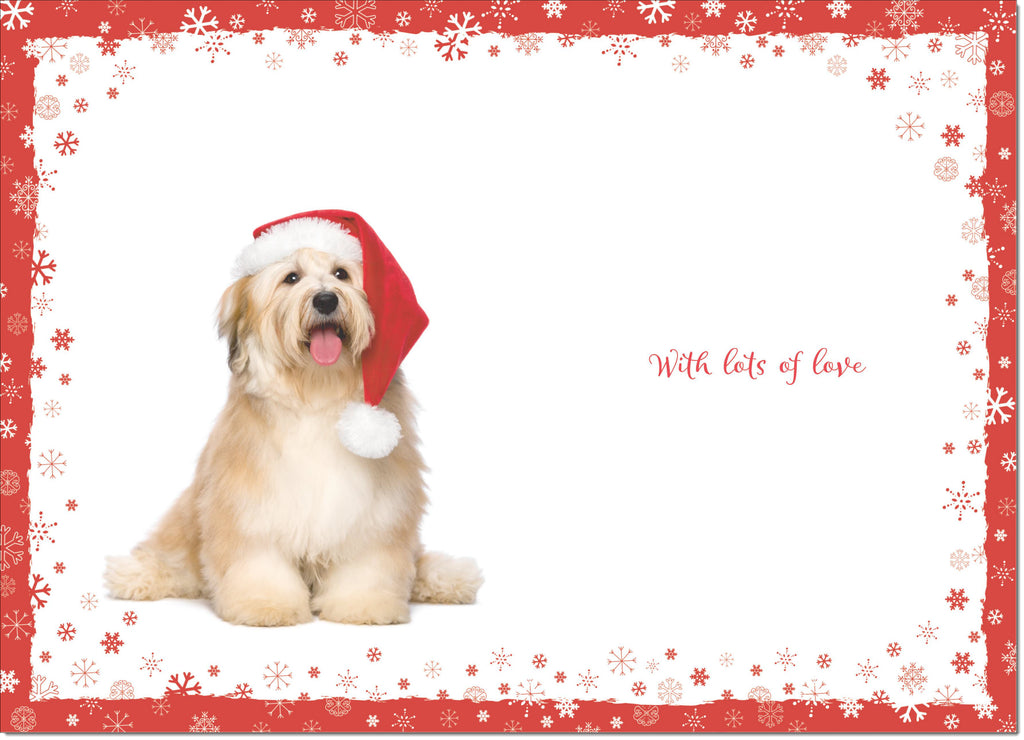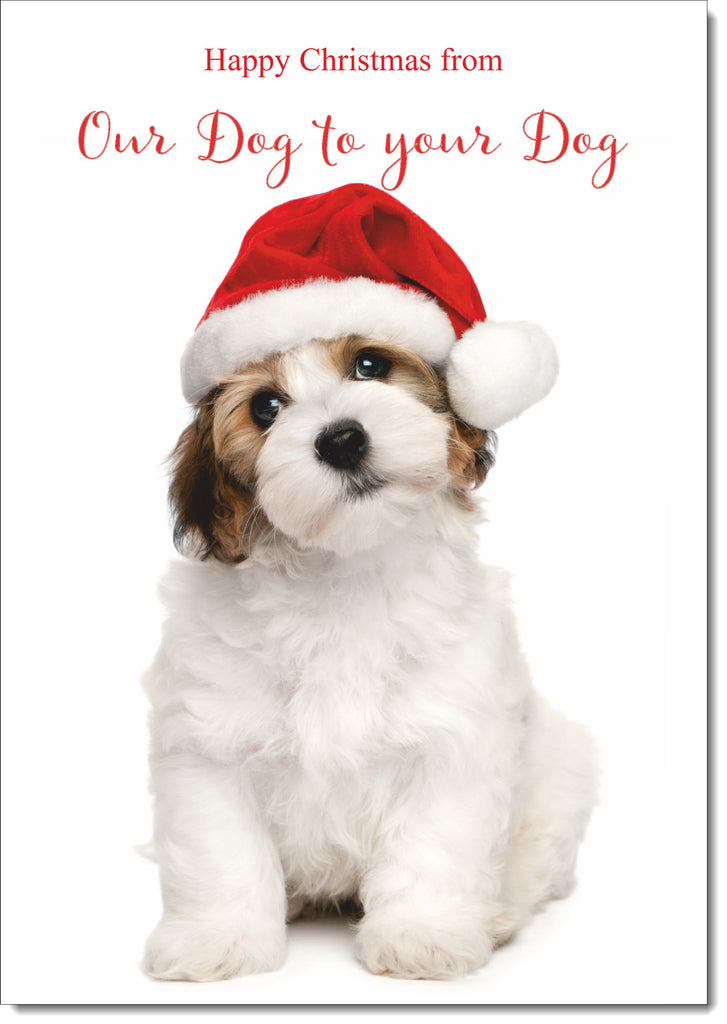 Our Dog To Your Dog Christmas Card Dog and Santa Hat