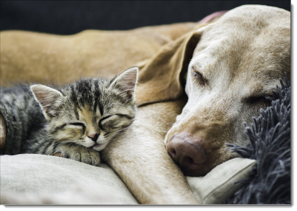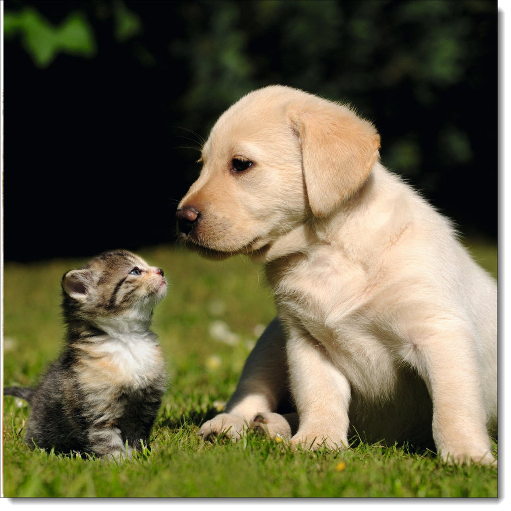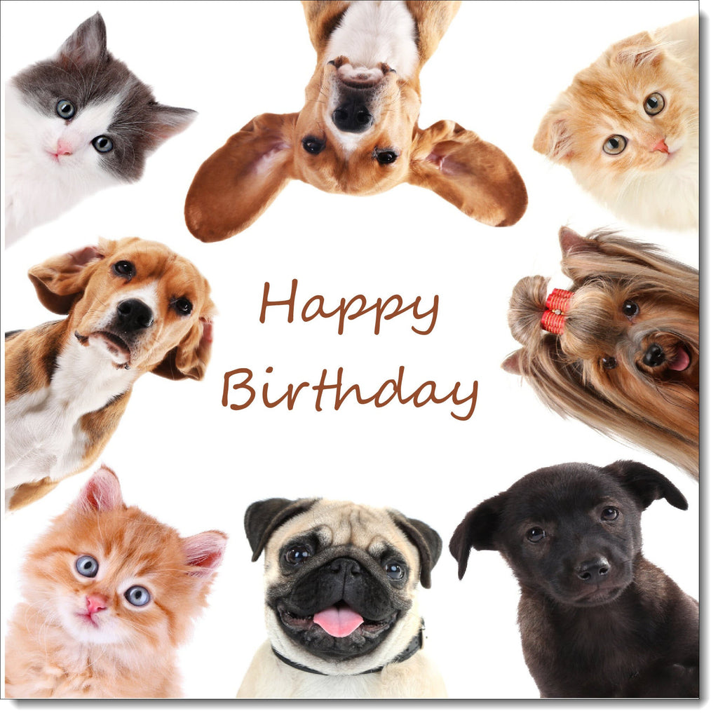 Dog Birthday Card Maine Coon Cat and Labrador Puppy