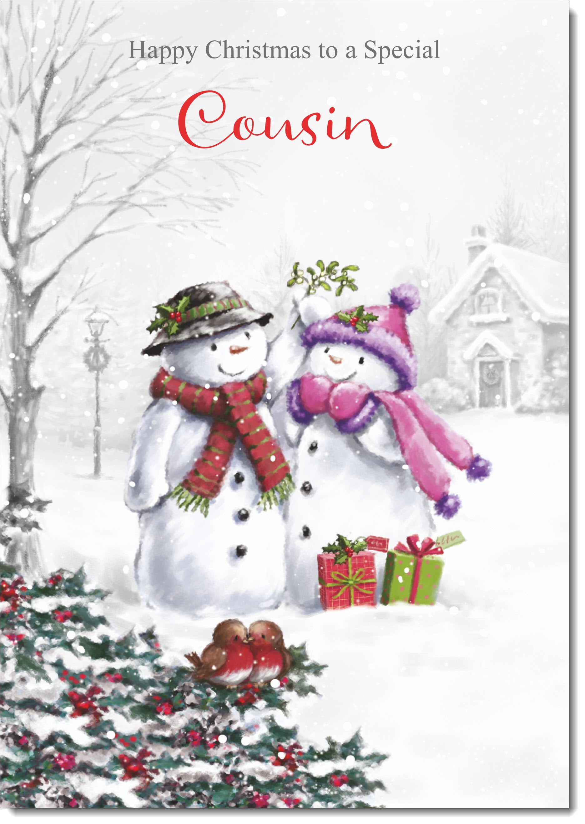 Cousin Christmas Card Snowman Couple