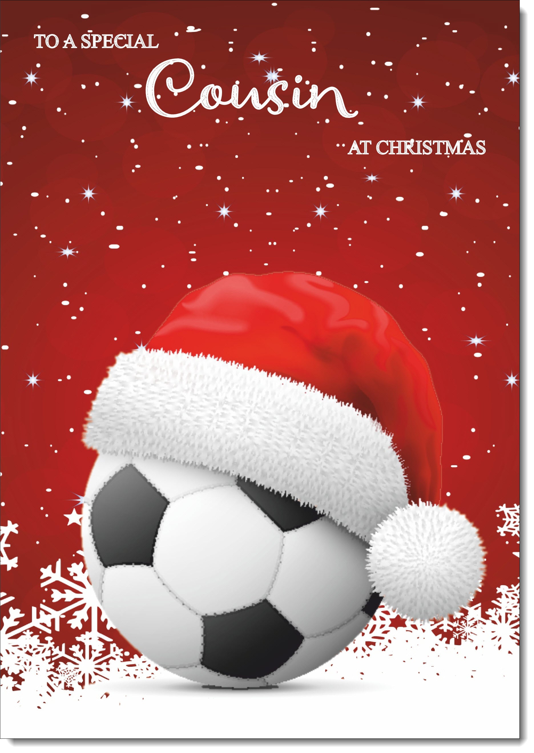 Cousin Christmas Card Santa Hat Football with Red Sky