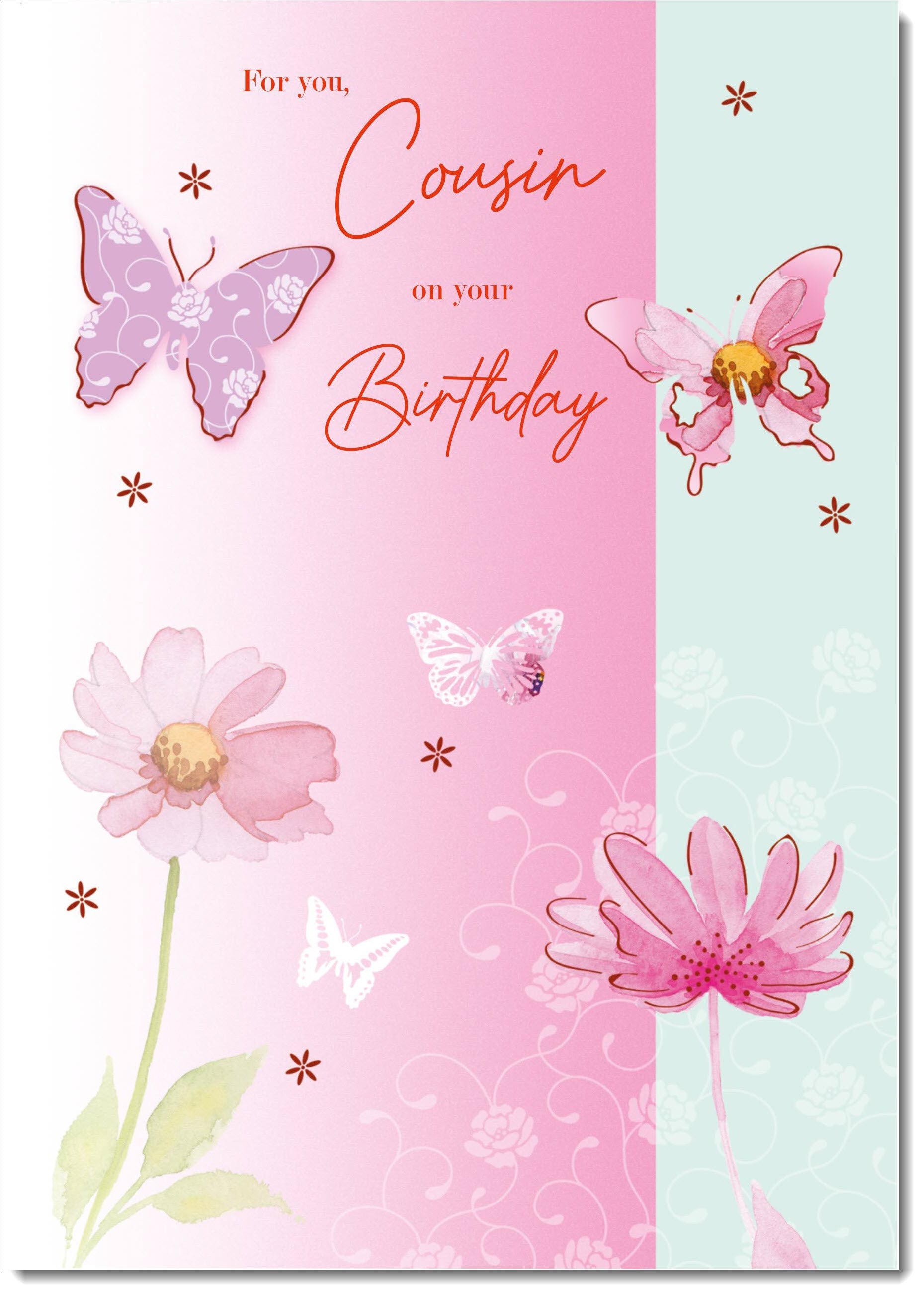 Cousin Birthday Card for Her Butterflies and Flowers