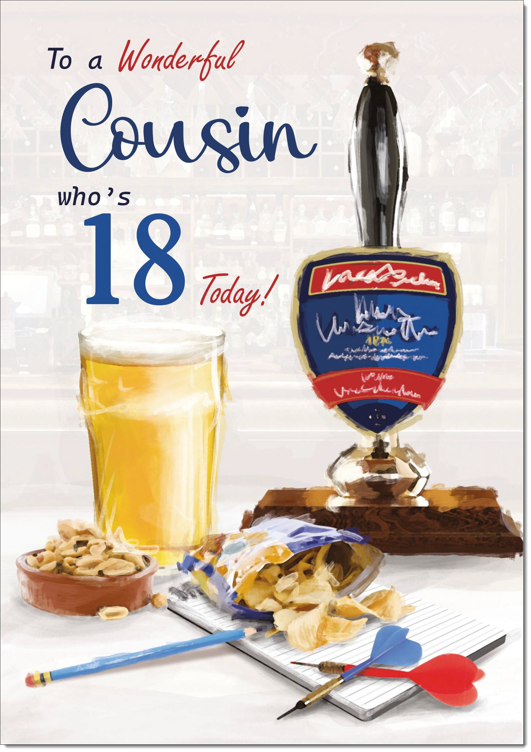 Cousin Male 18th Birthday Card Age 18 Draft Beer