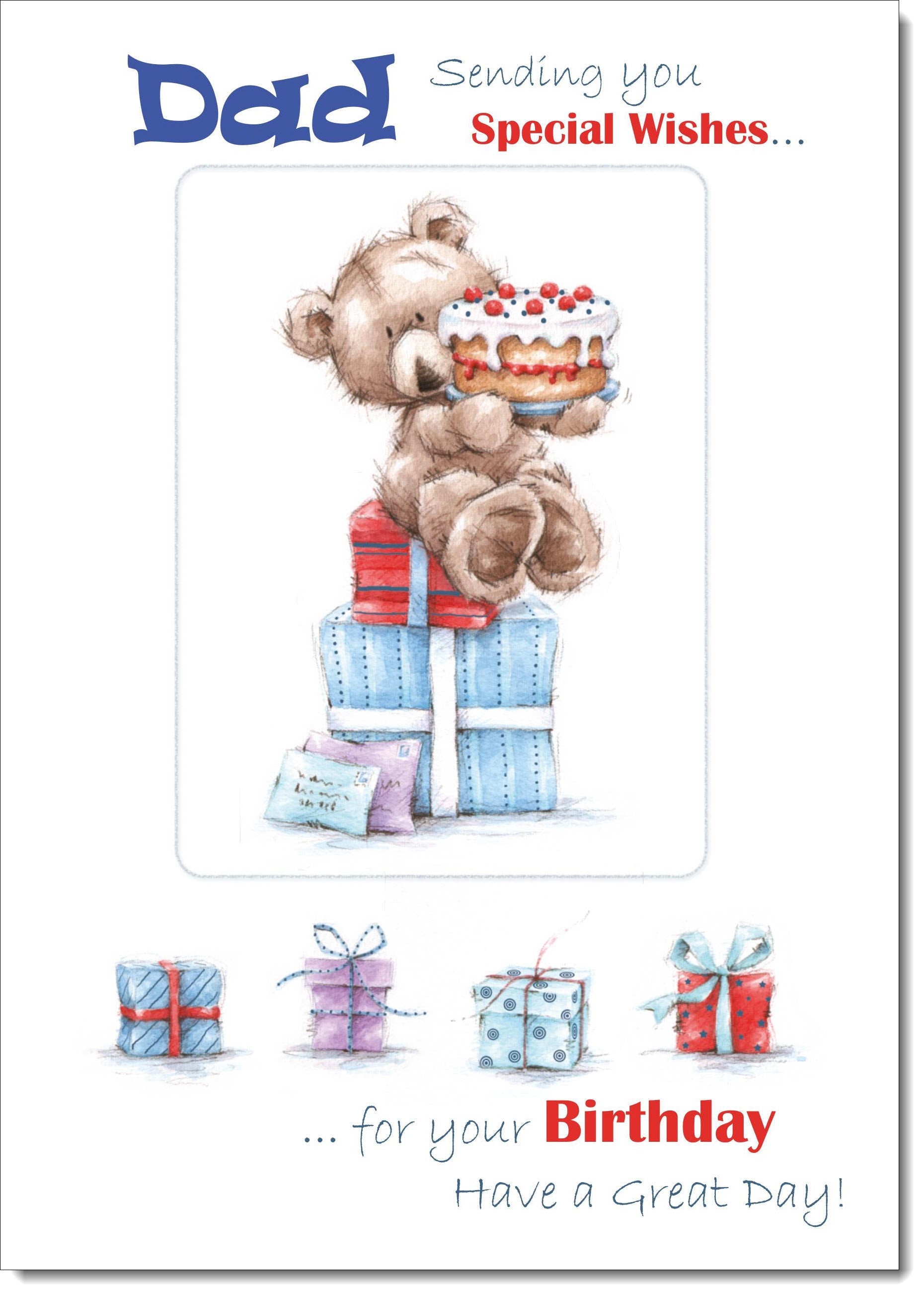 Dad Birthday Card Cute Bear with Cake