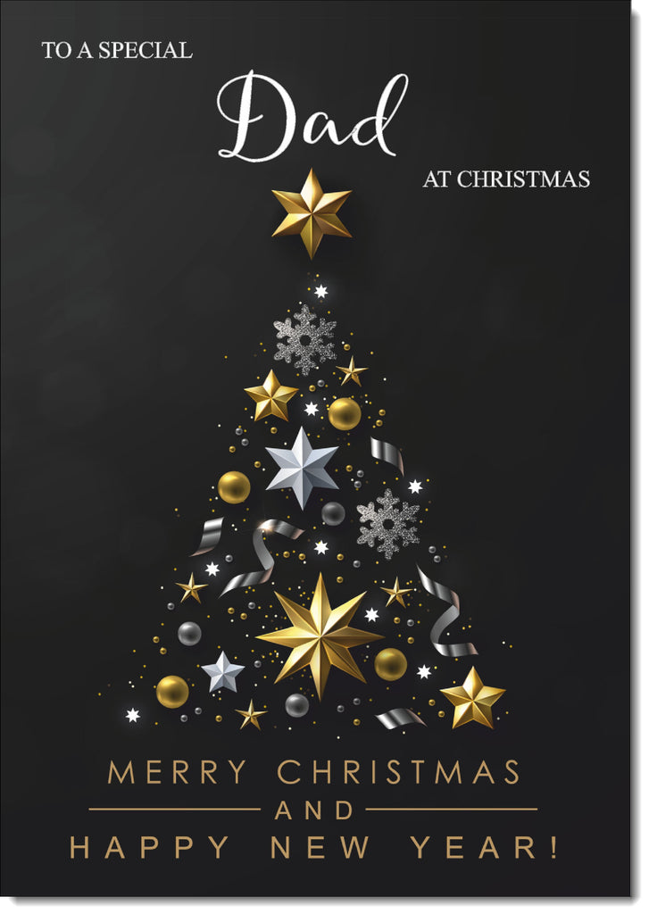 Dad Christmas Card Black and Gold Abstract Tree