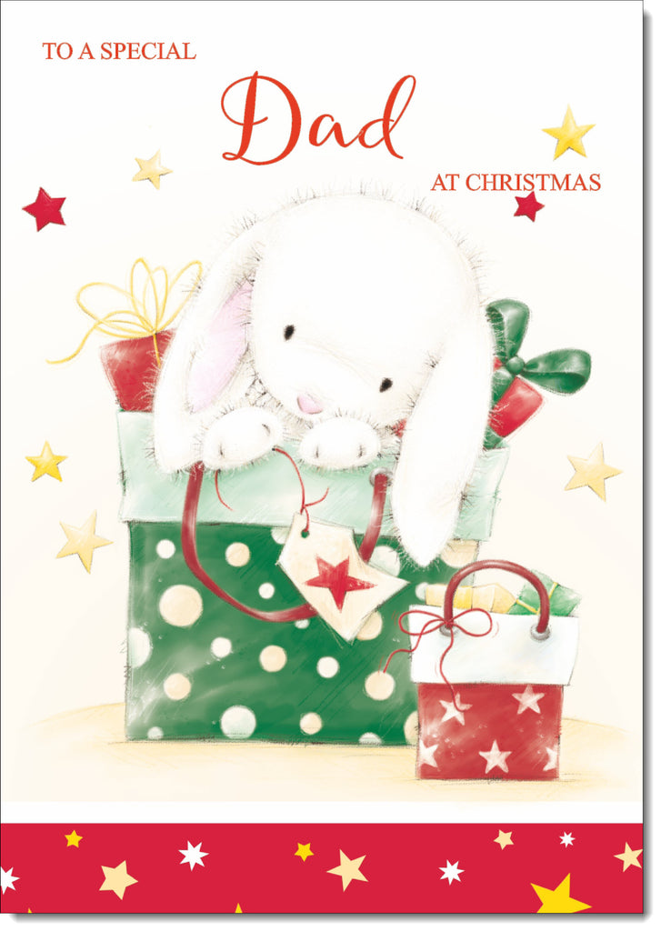 Dad Christmas Card Cute Rabbit with Parcels