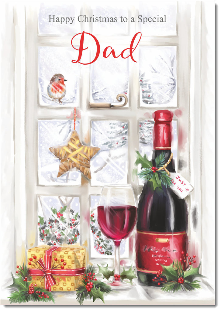 Dad Christmas Card Red Wine Christmas Scene