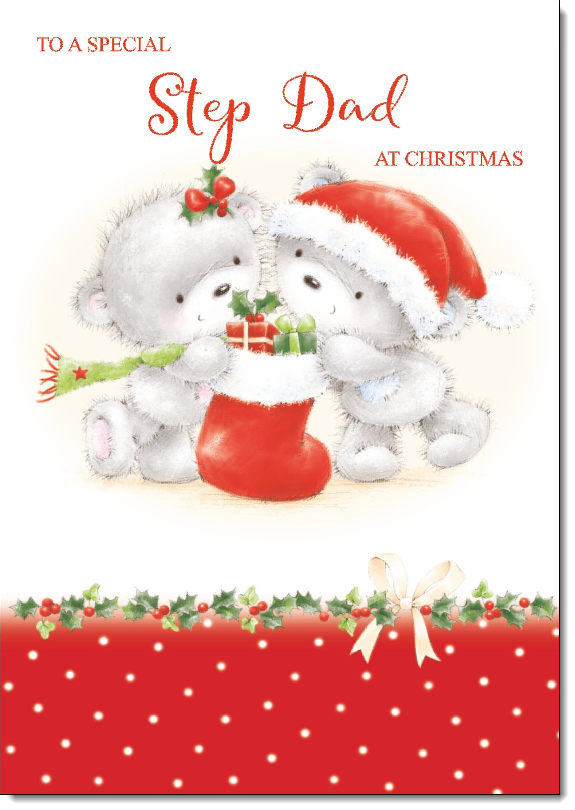 Stepdad Christmas Card Cute Bears with Stocking