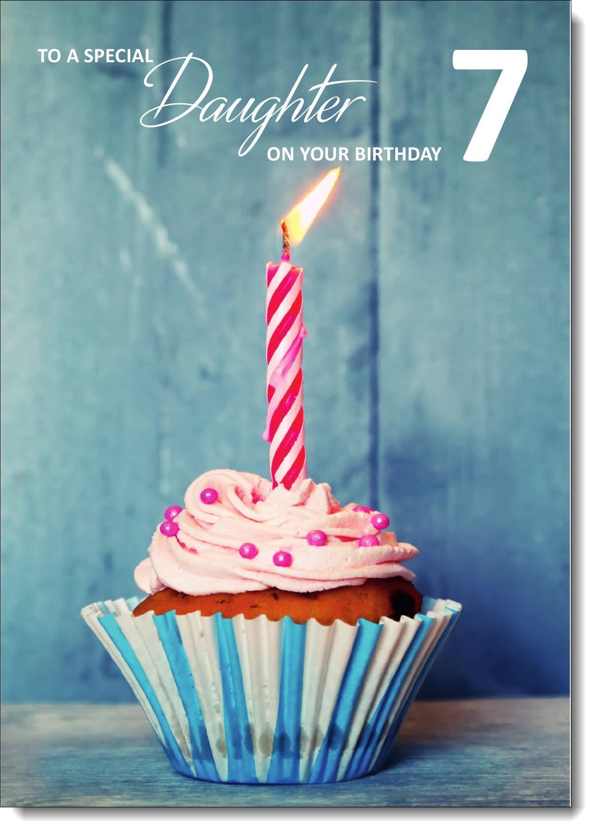 Daughter 7th Birthday Card Age 7 Cupcake and Pink Candle