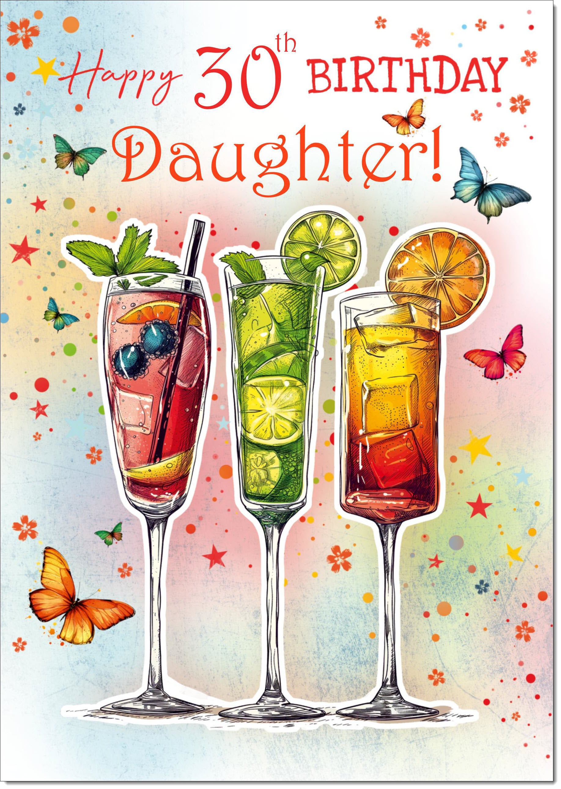 Daughter 30th Birthday Card Age 30 Cocktails and Butterflies