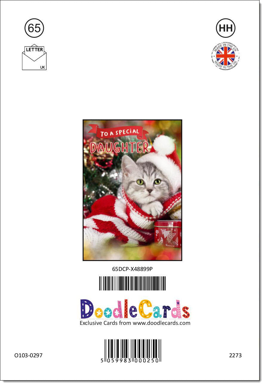 Daughter Christmas Card Cute Santa Paws Kitten Cat Pet Christmas Hat