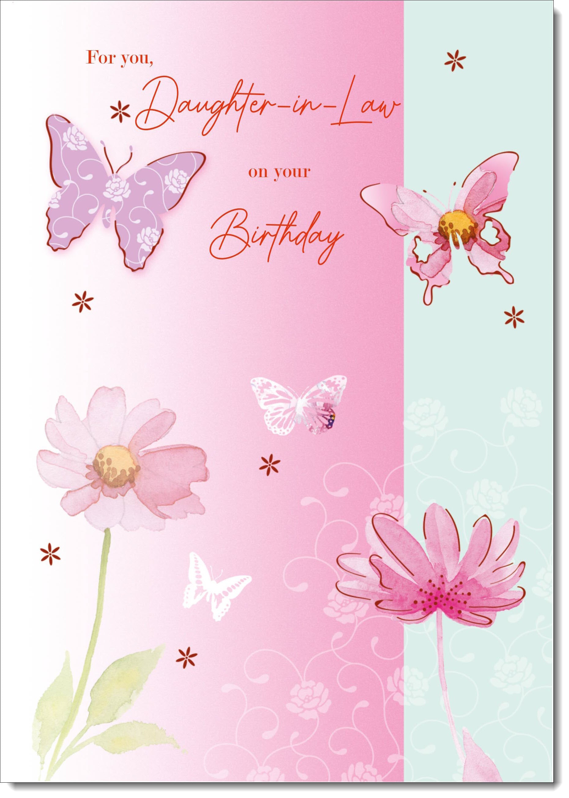 Daughter-in-Law Birthday Card Butterflies and Flowers