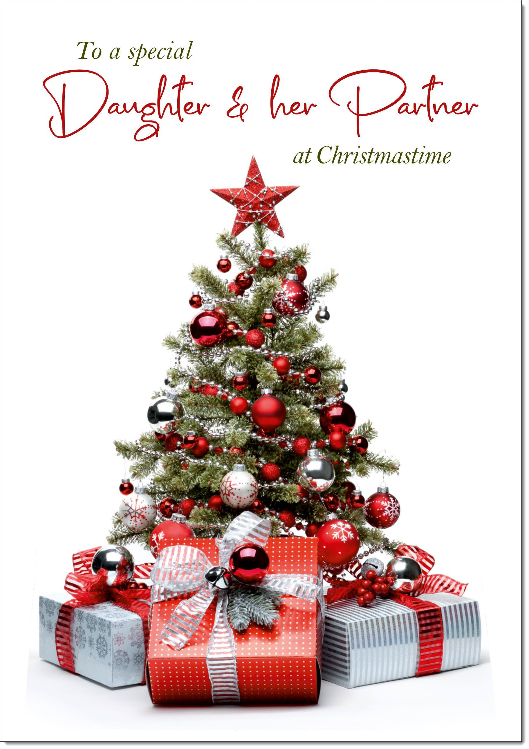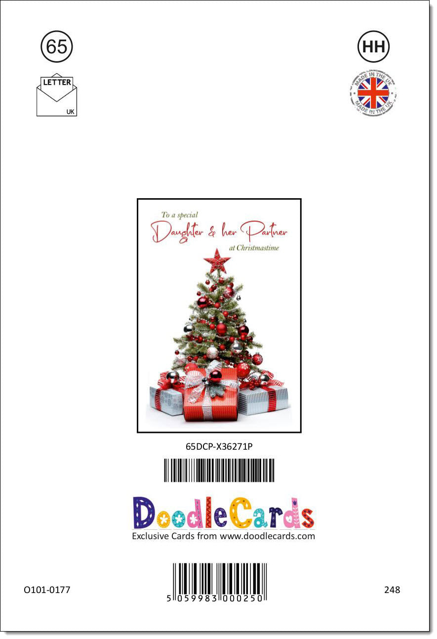 Daughter & Partner Christmas Card Christmas Tree and Parcels