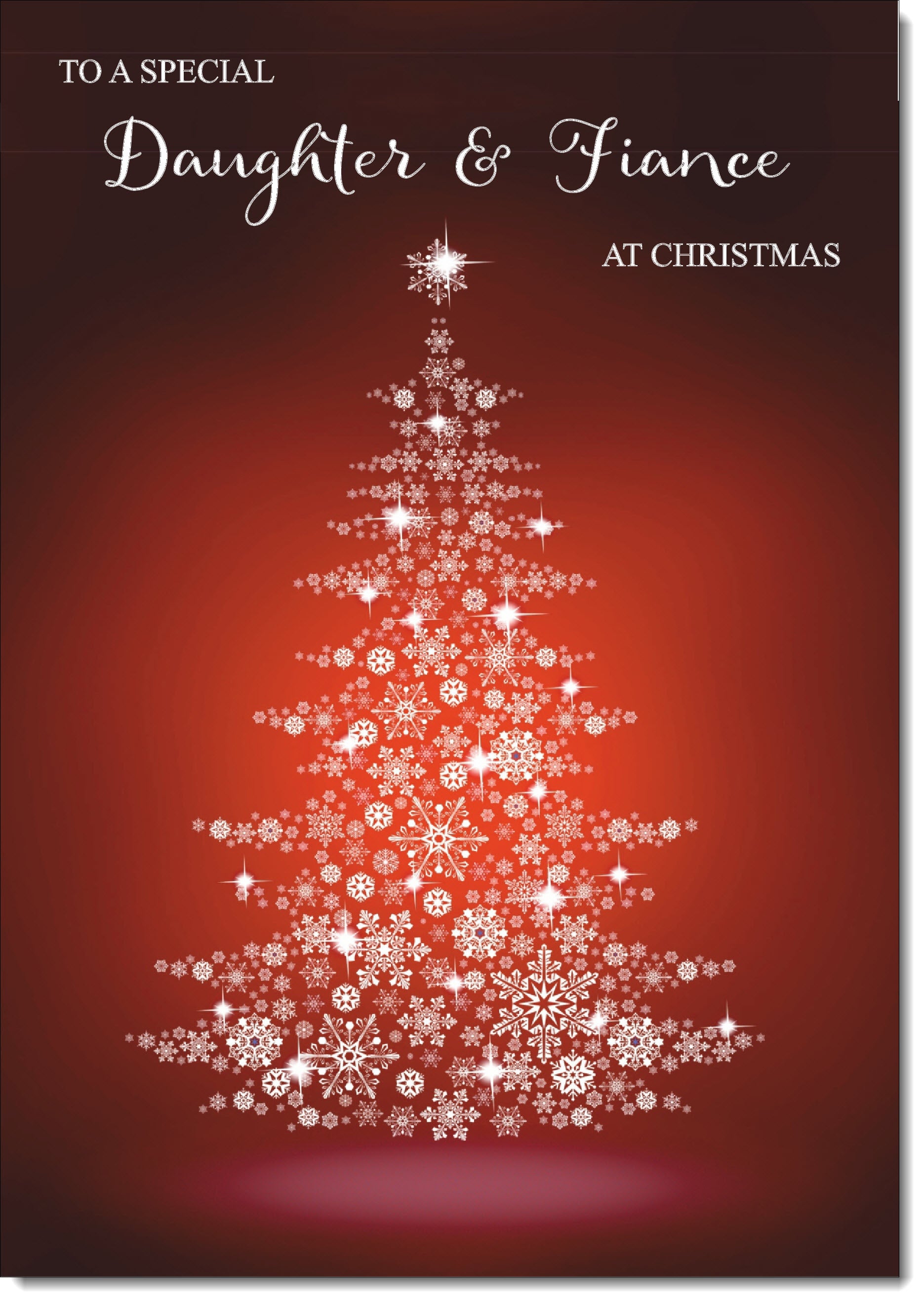 Daughter & Fiance Christmas Card Red Snowflake Christmas Tree