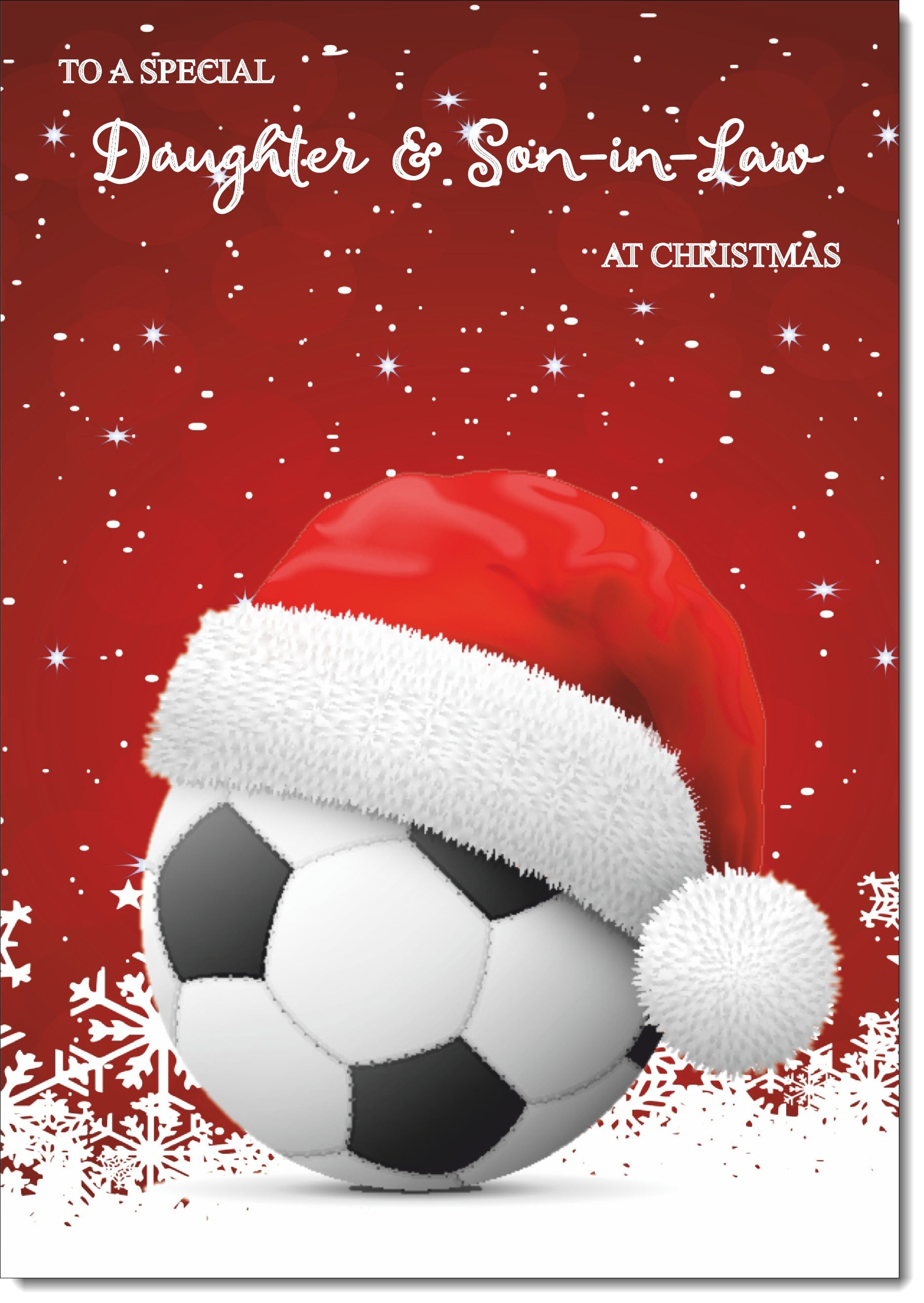 Daughter & Son-in-Law Christmas Card Santa Hat Football with Red Sky