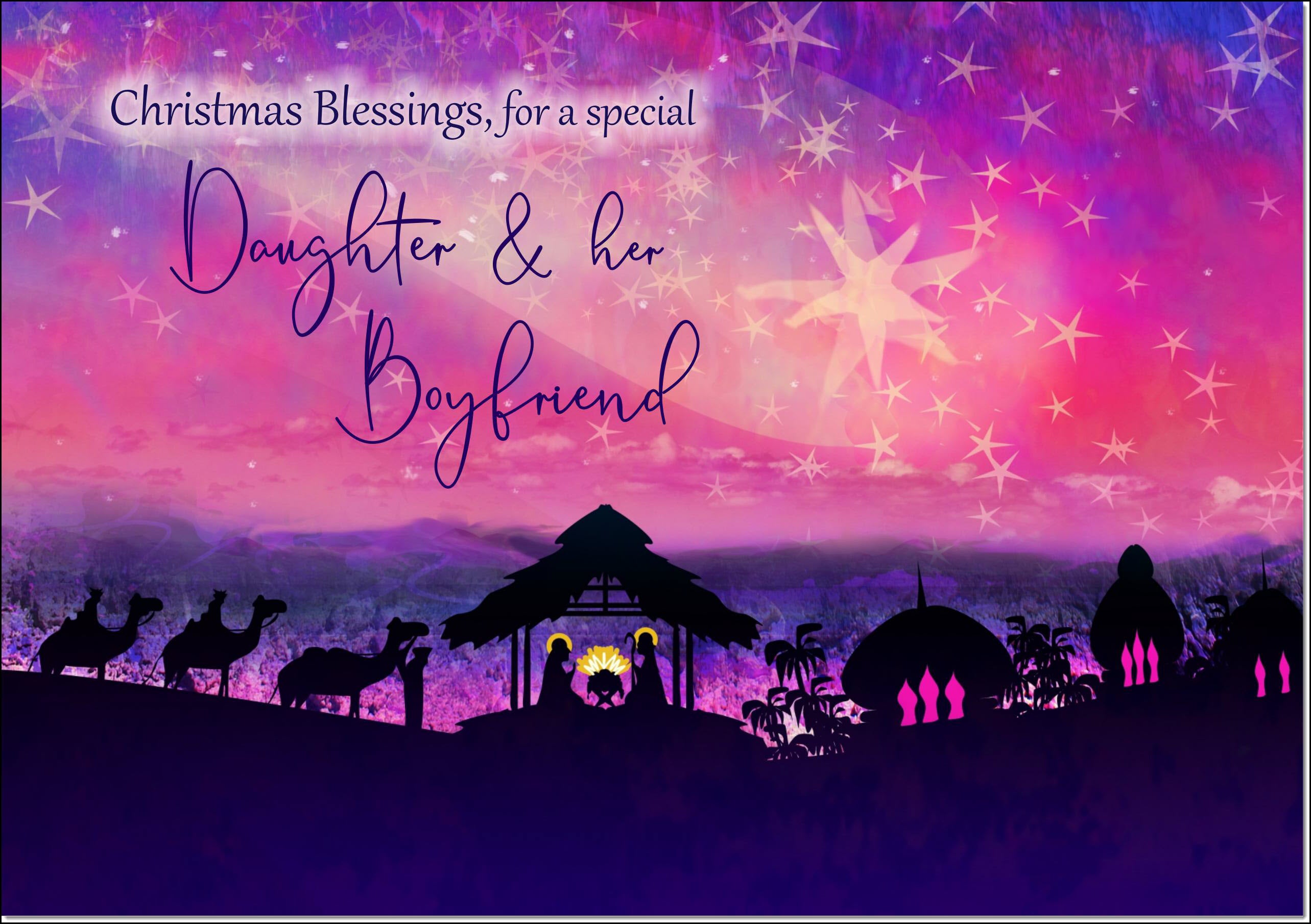 Daughter & Boyfriend Christmas Card Nativity Scene Evening Watercolour