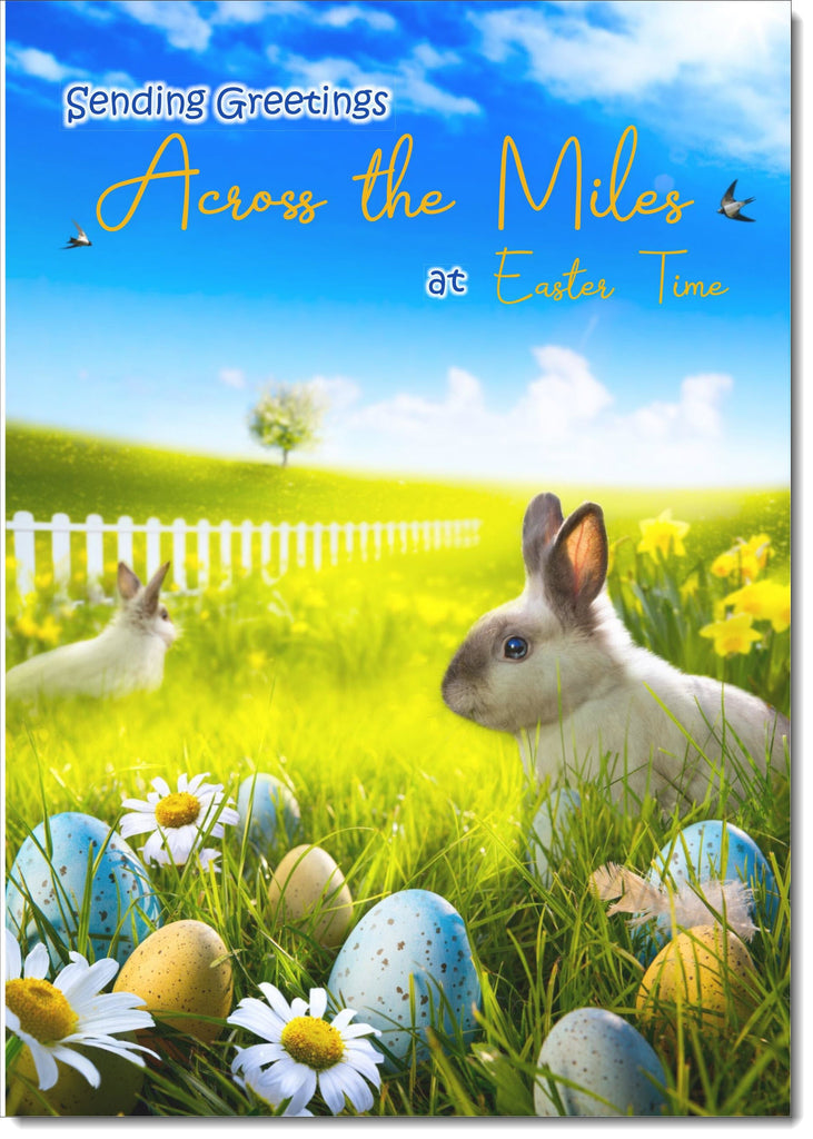 Across The Miles Easter Card Spring Flowers with Bunnies