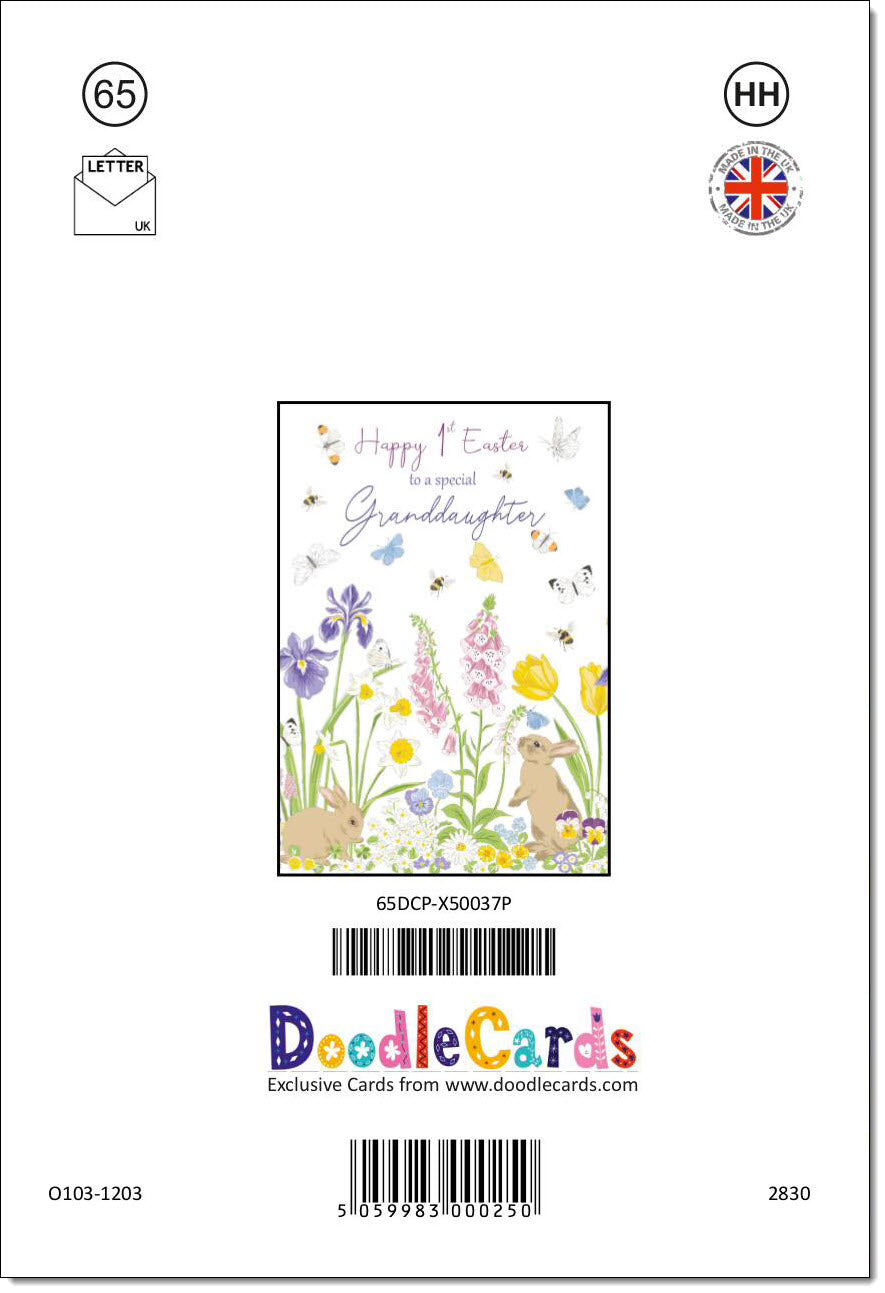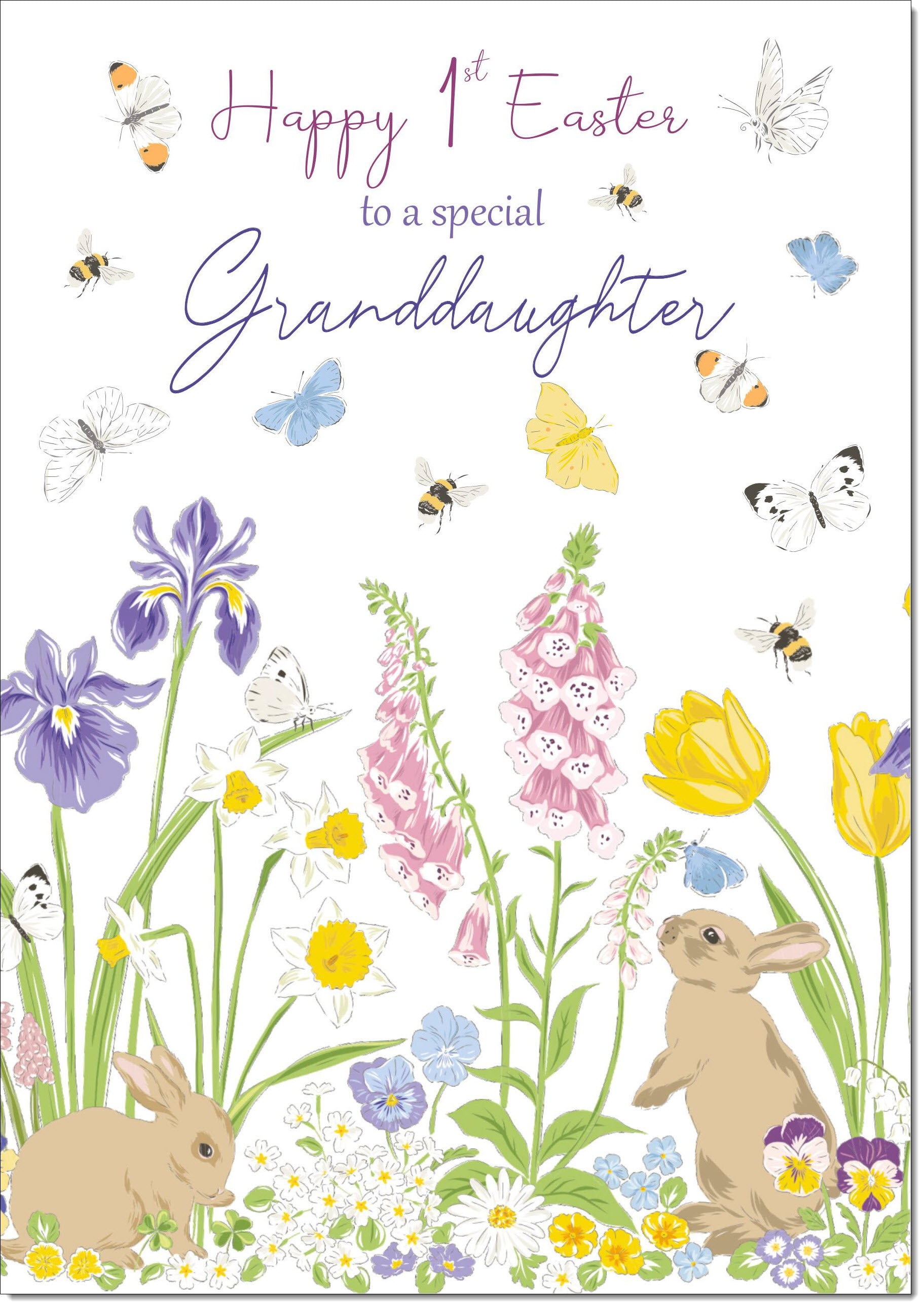 Granddaughters 1st First Easter Card Spring Flowers with Bunnies
