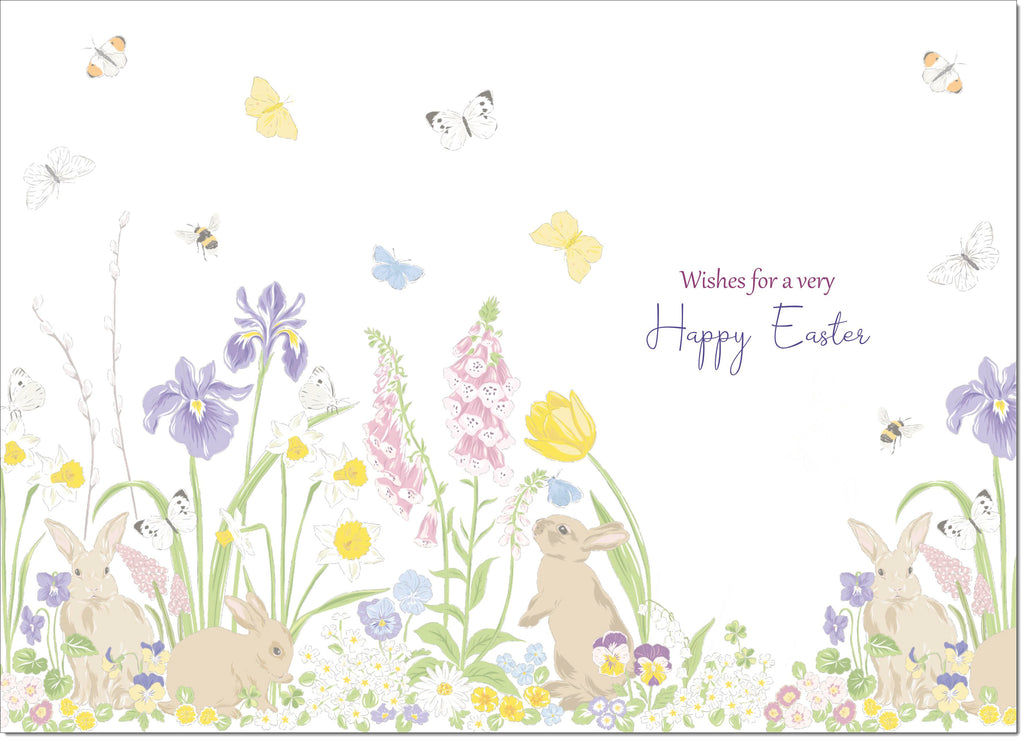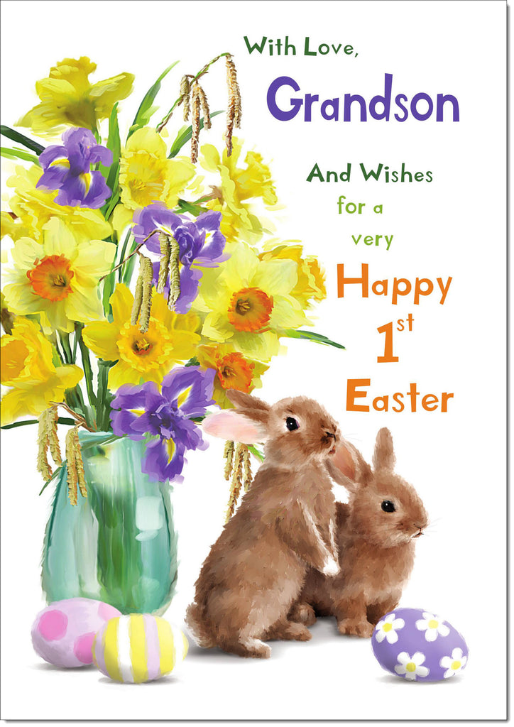 Grandsons 1st First Easter Card Spring Flowers with Bunnies