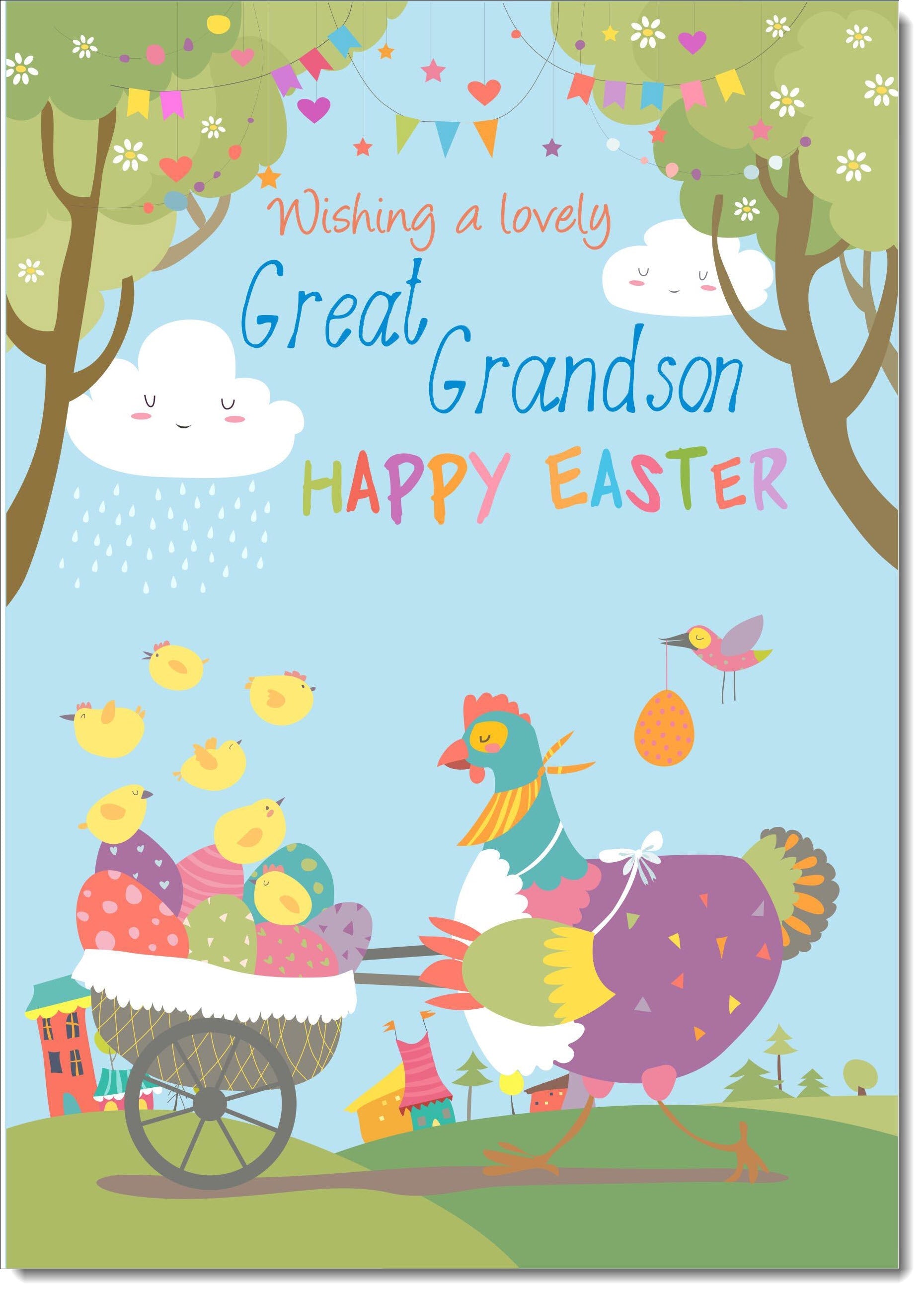 Great Grandson Easter Card Mother Hen and Easter Eggs