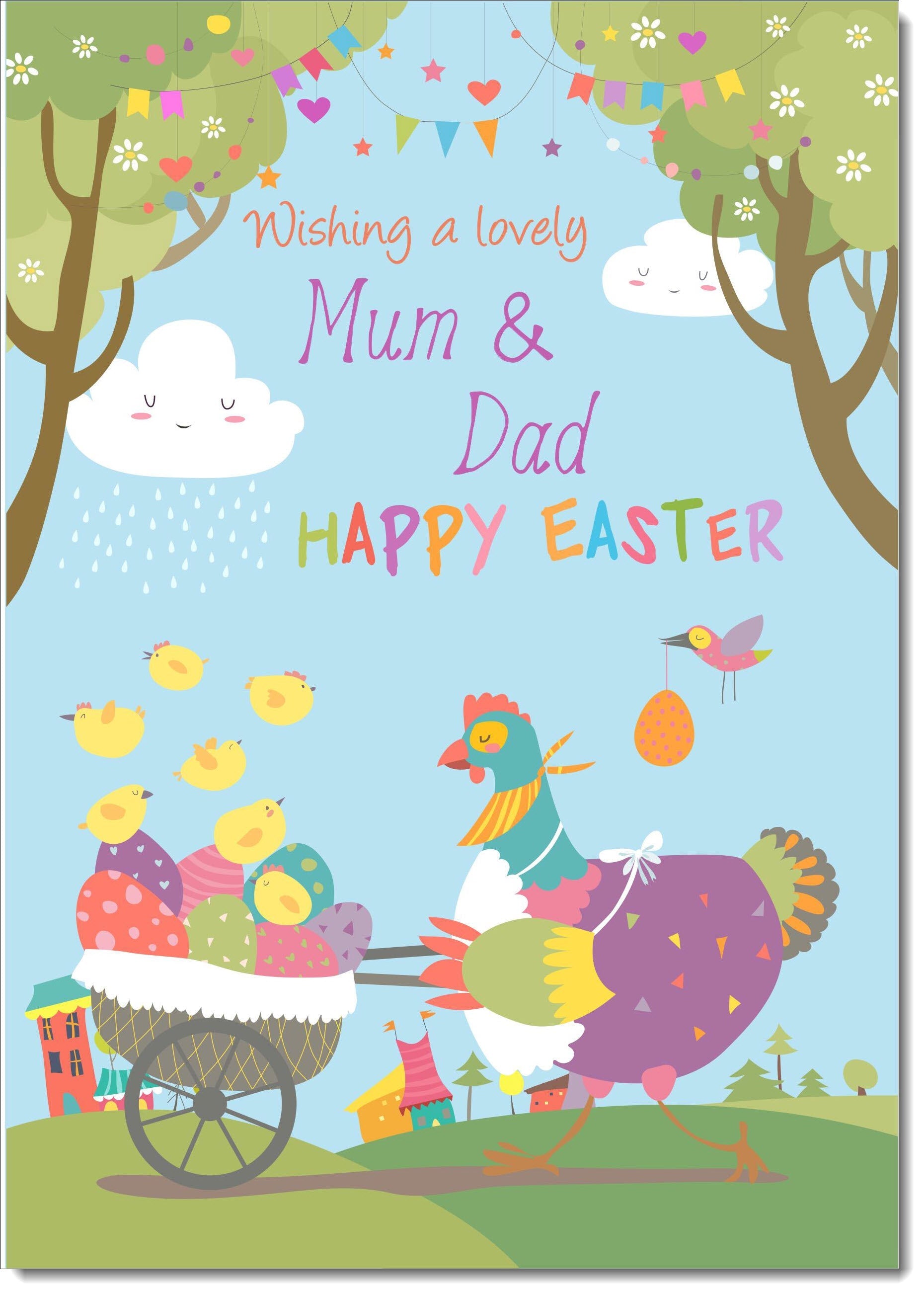 Mum & Dad Easter Card Mother Hen and Easter Eggs