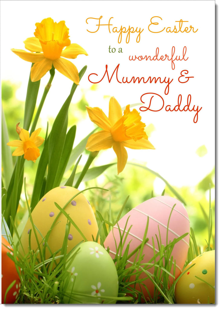 Mummy & Daddy Easter Card Daffodils & Eggs