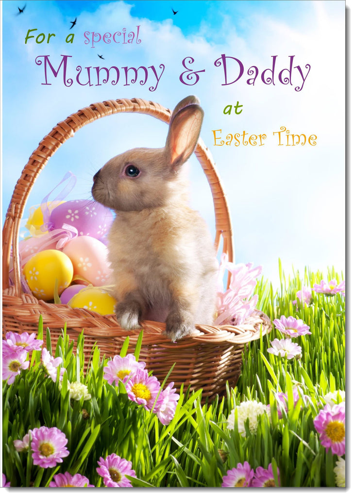 Mummy & Daddy Easter Card Easter Bunny and Eggs