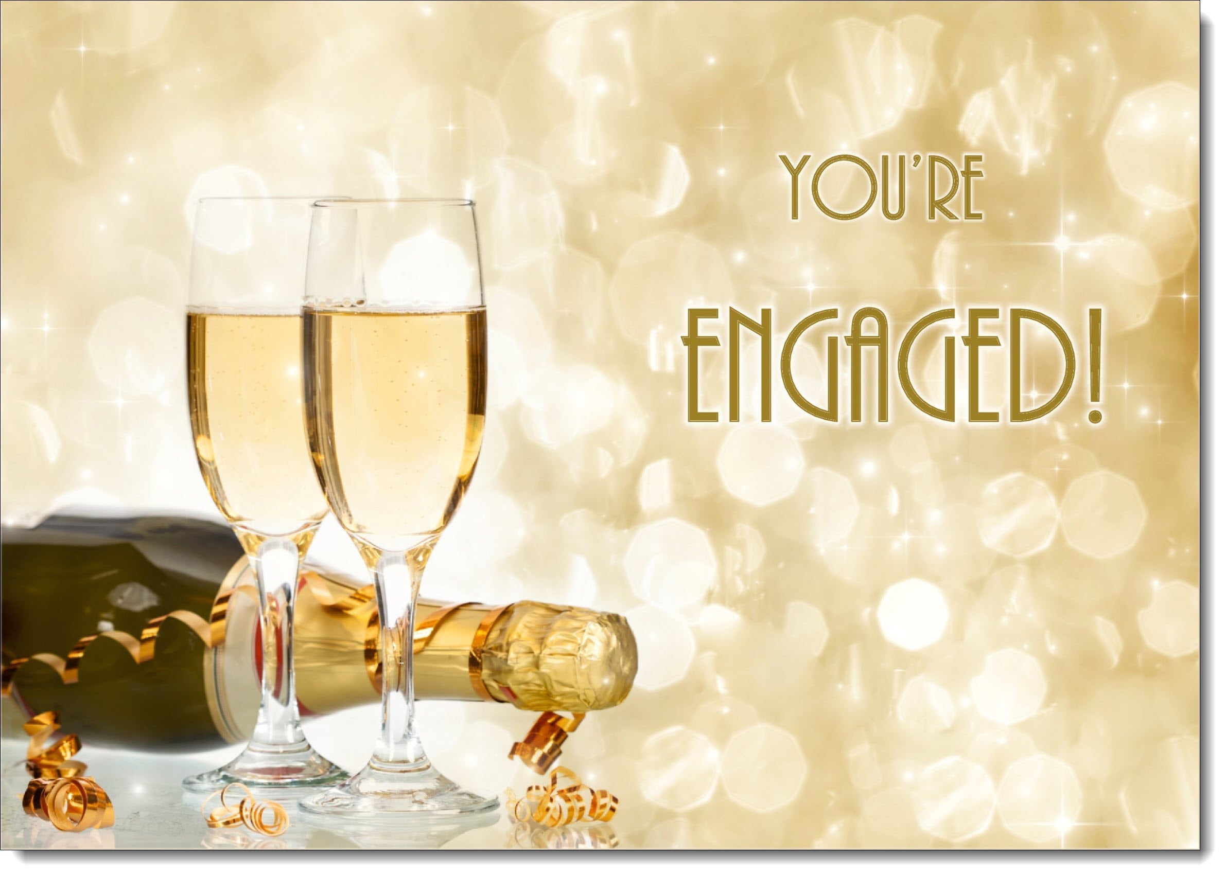 Engagement Card Champagne Bottle and Glasses