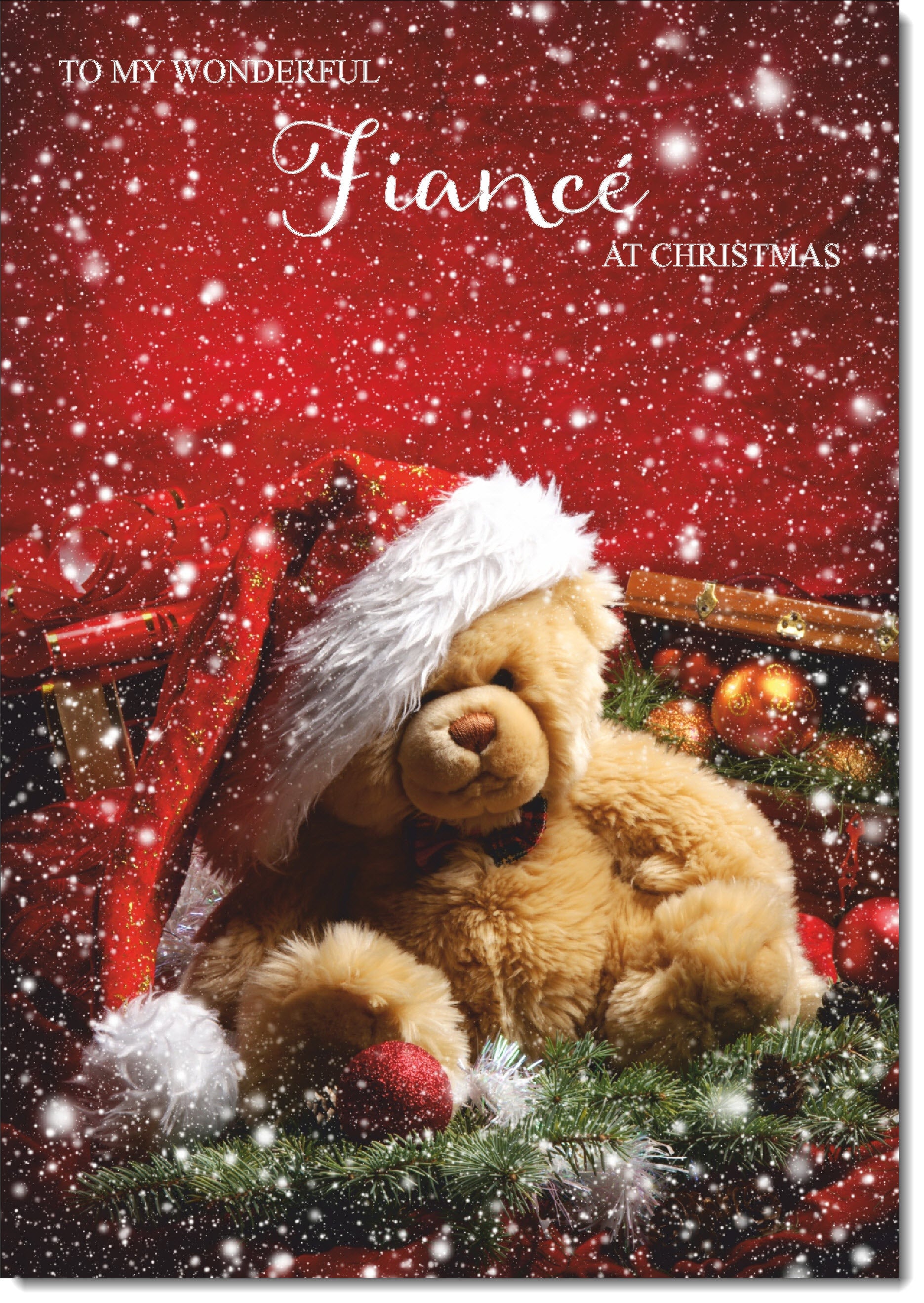 Fiance Christmas Card Teddy Bear in Santa Hat