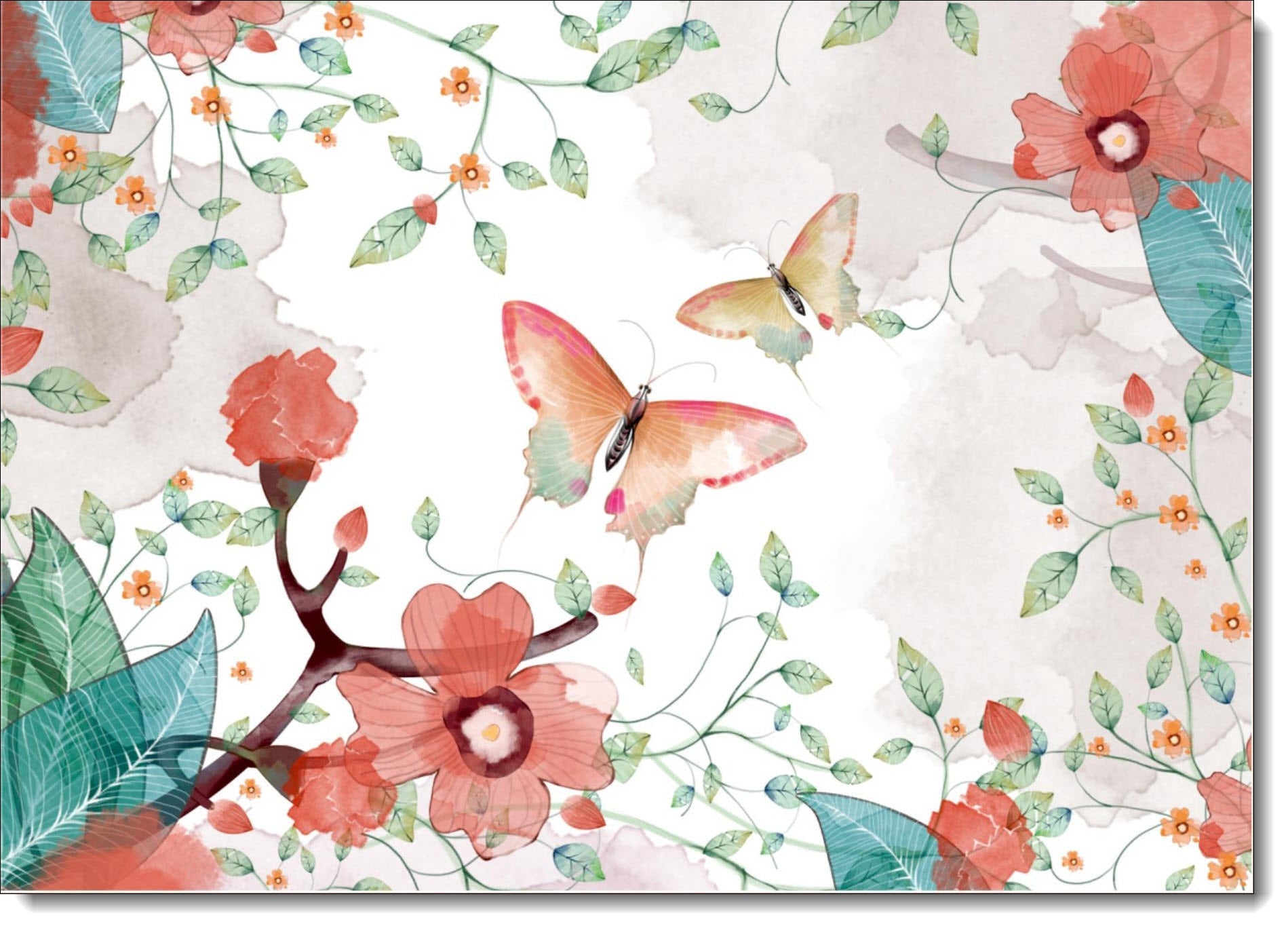 Floral Birthday Card Watercolour Butterflies