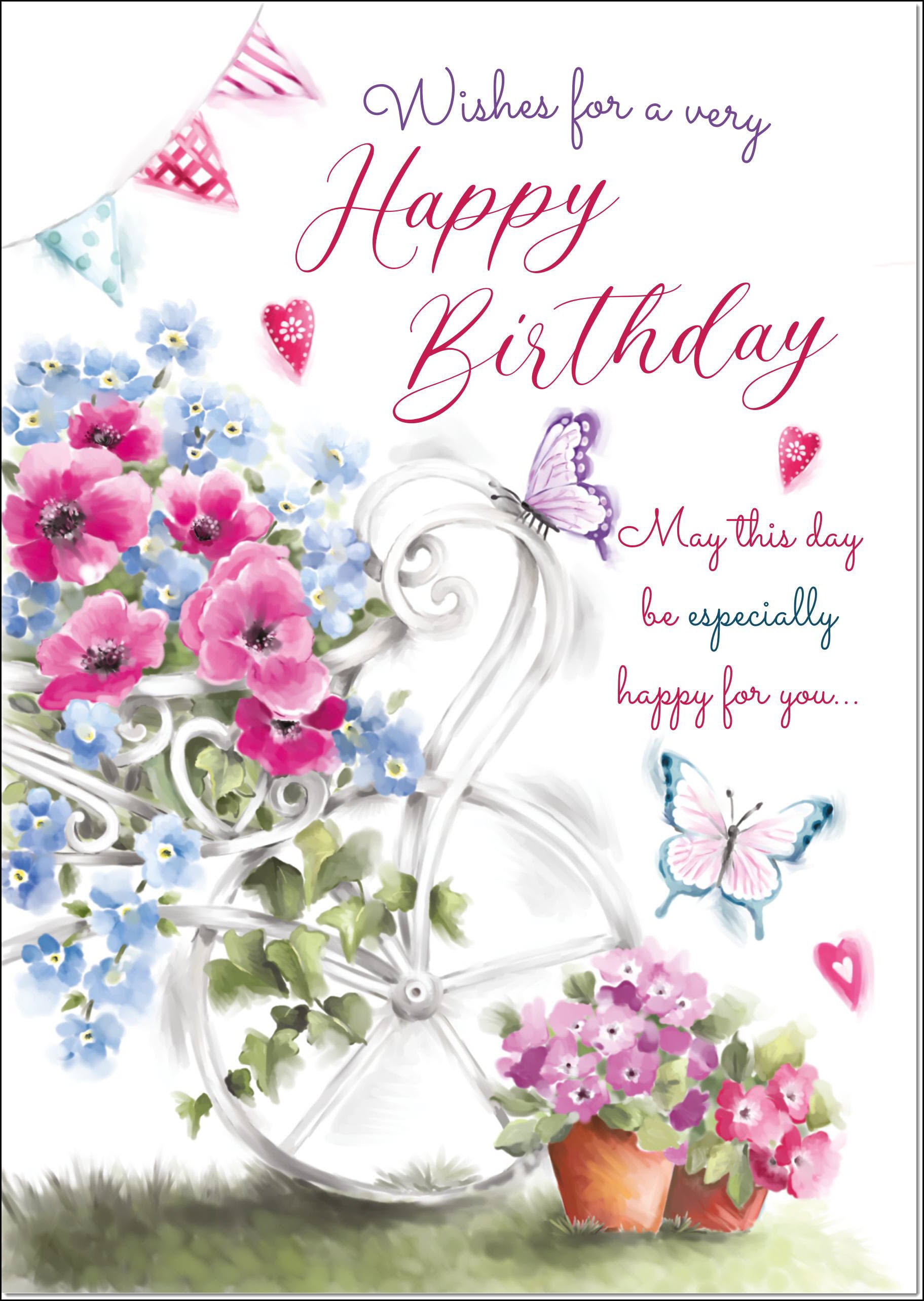 Birthday Card for Her Traditional Garden Wheelbarrow Bouquet