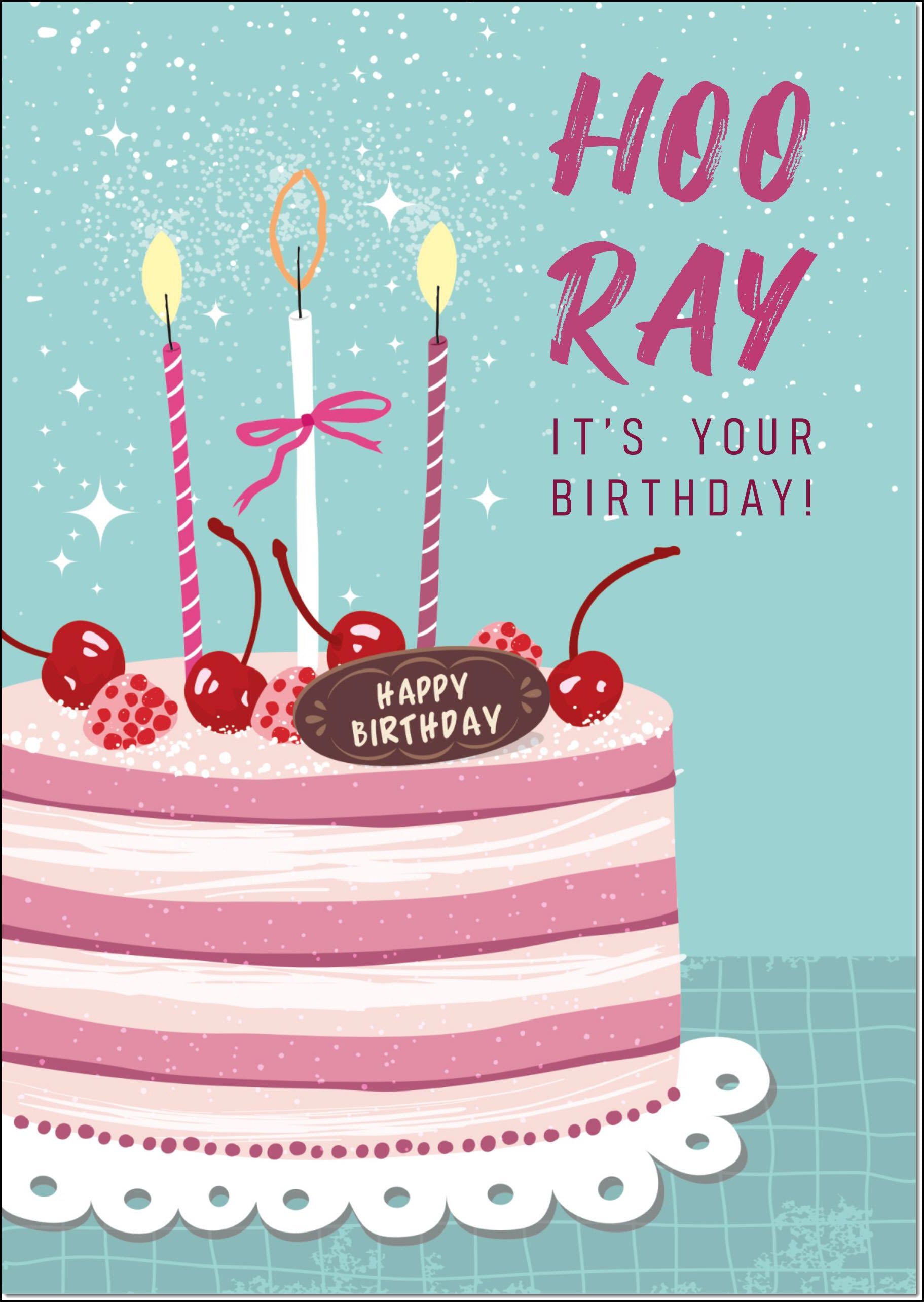 Birthday Card for Her Traditional Cherry Birthday Cake and Candles