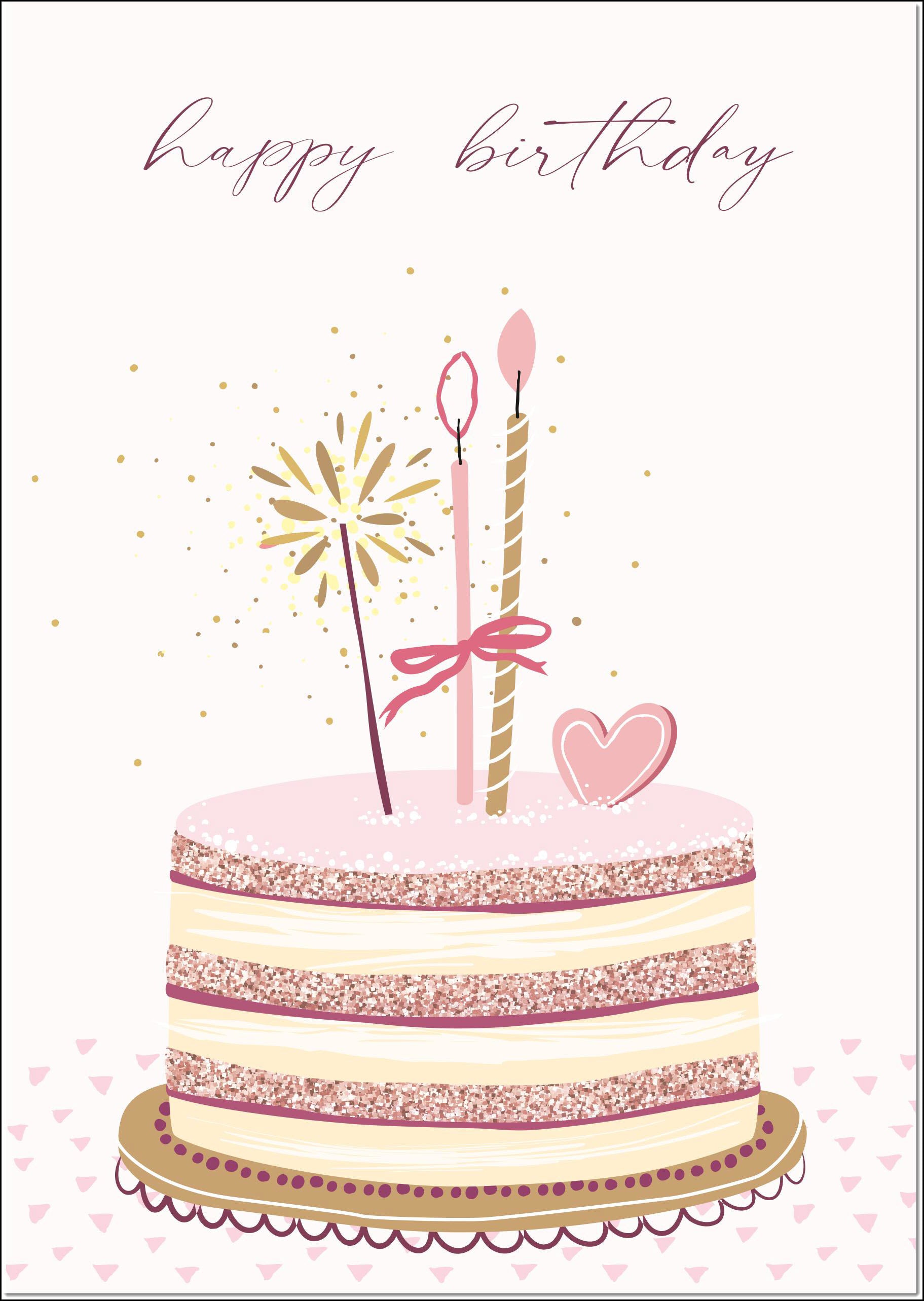 Birthday Card for Her Traditional Pastel Pink Birthday Cake