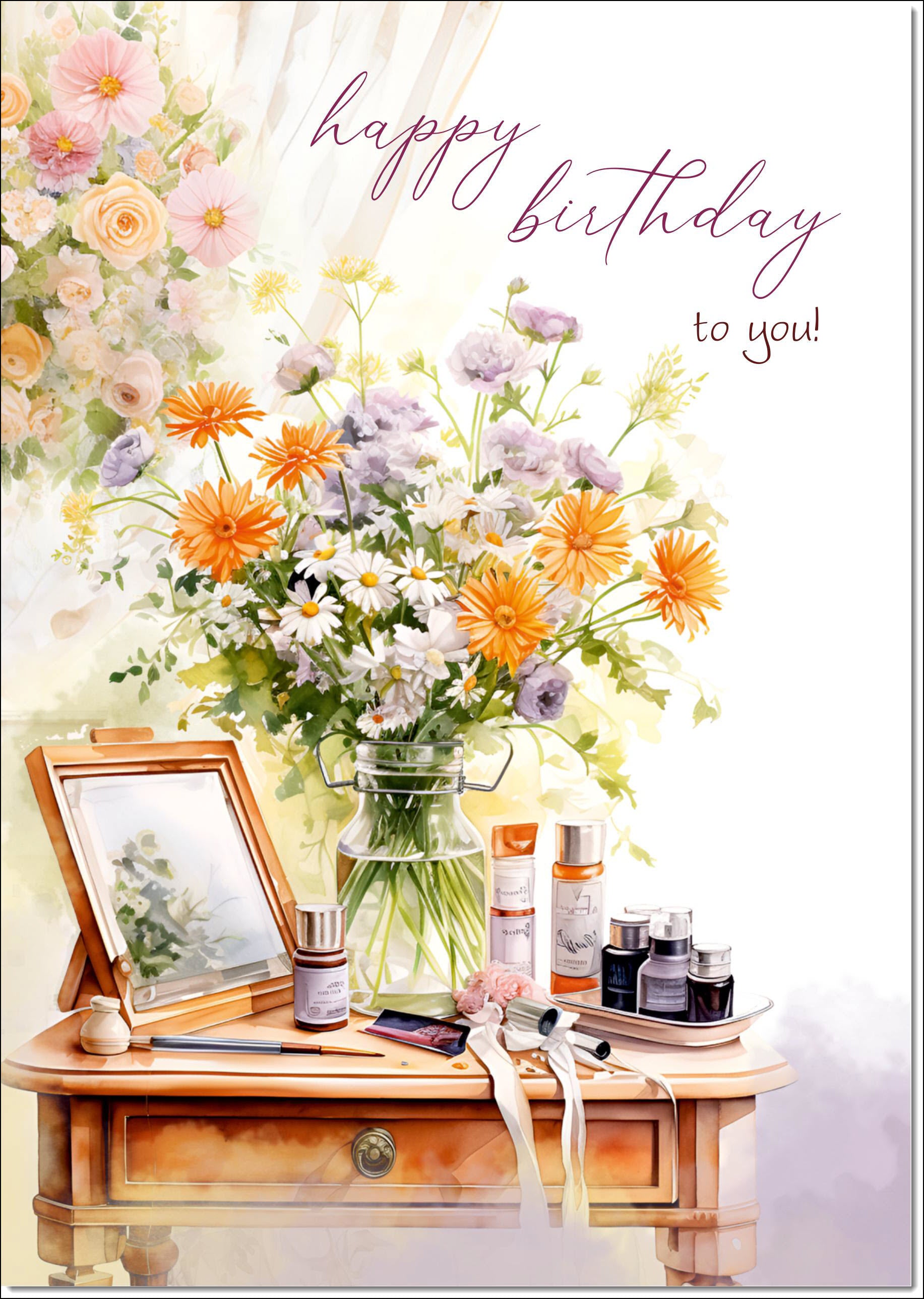Birthday Card for Her Traditional Dressing Table Bouquet
