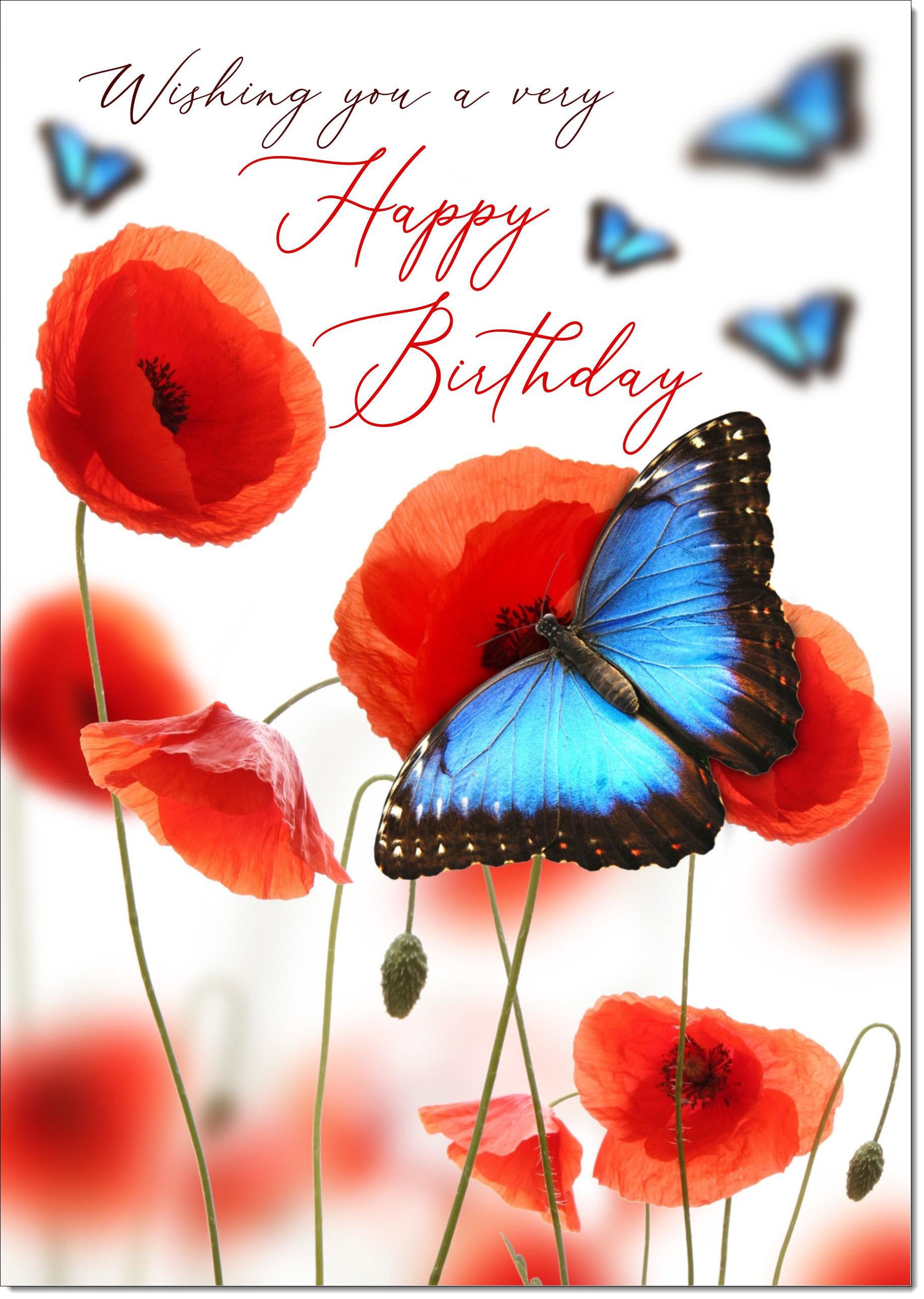 Birthday Card for Her Traditional Poppies and Blue Butterflies