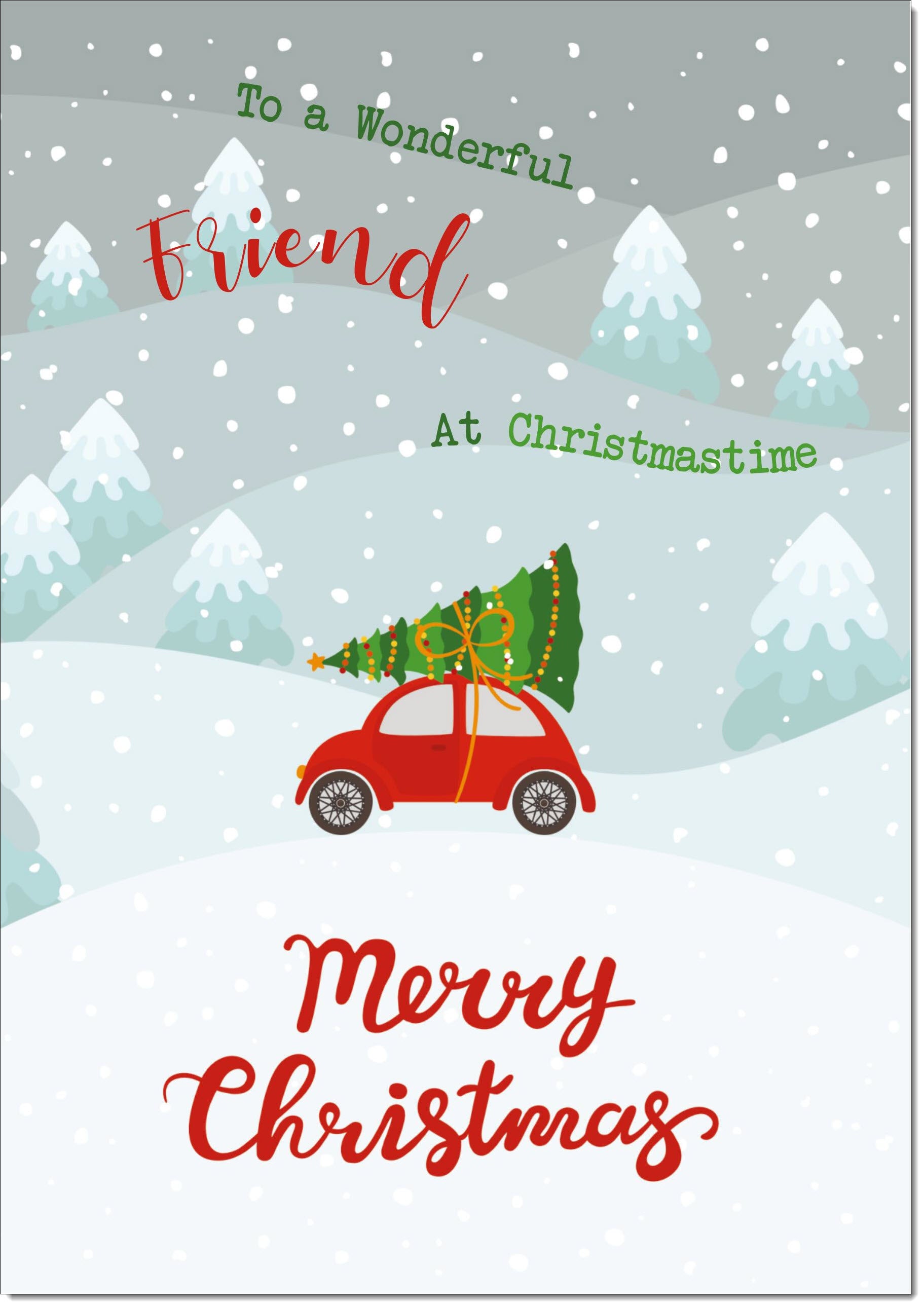 Friend Christmas Card Christmas Tree on Car