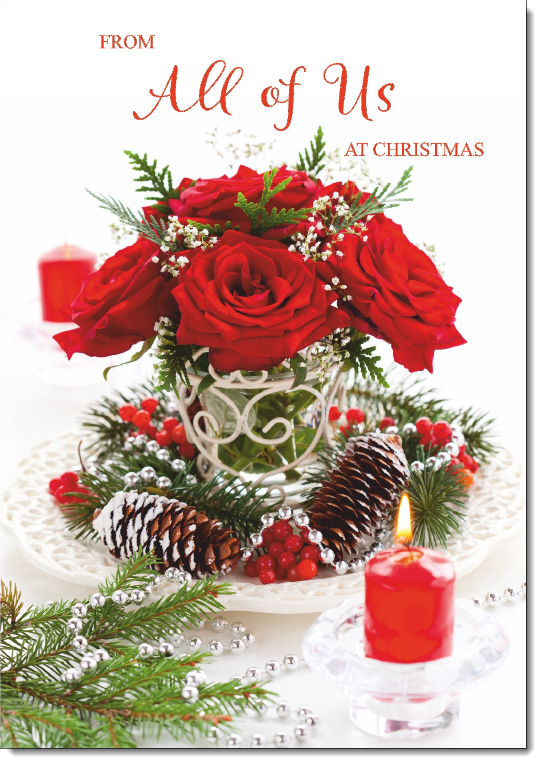 From All Of Us Christmas Card Red Roses Christmas Arrangement