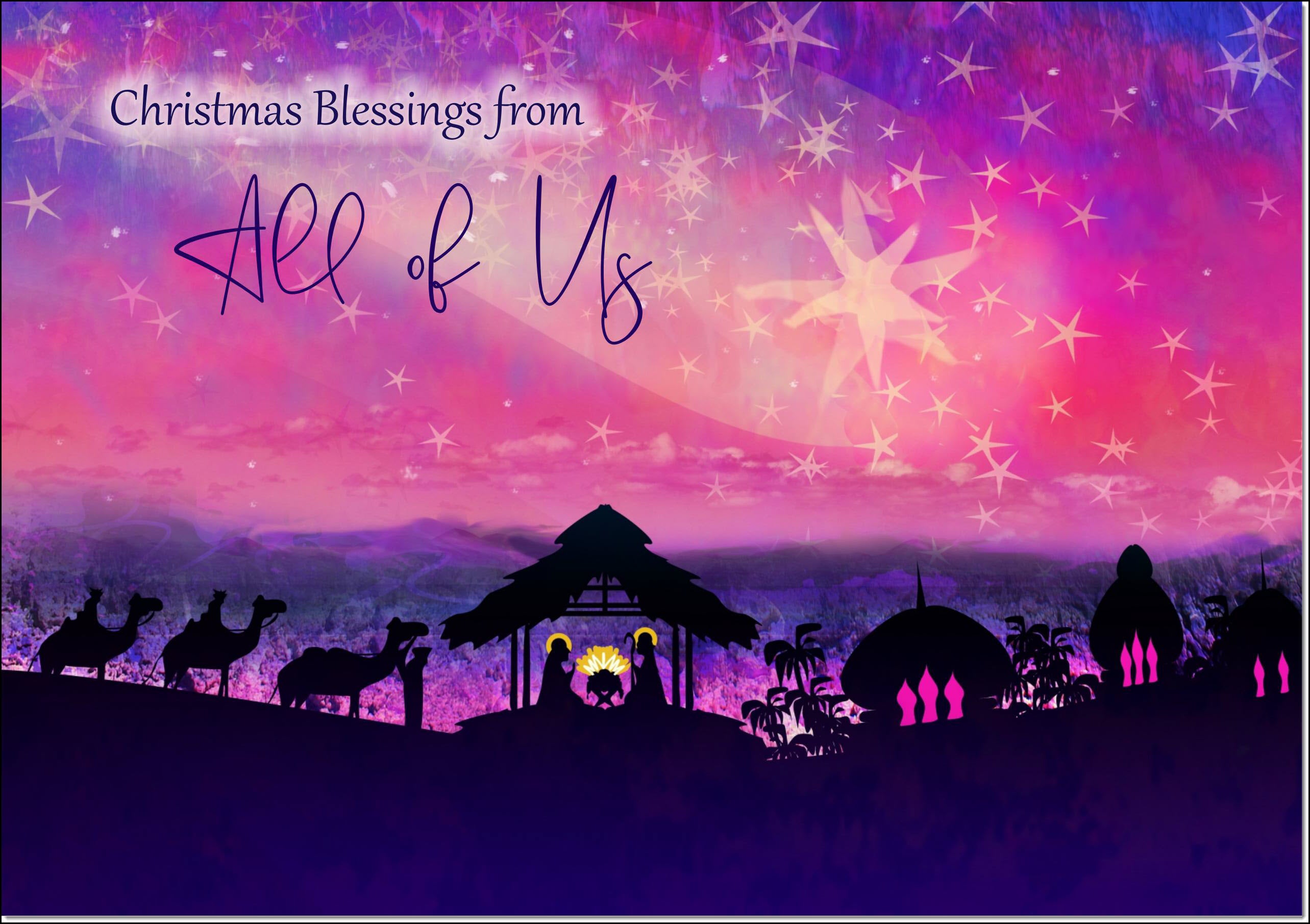 From All Of Us Christmas Card Nativity Scene Evening Watercolour