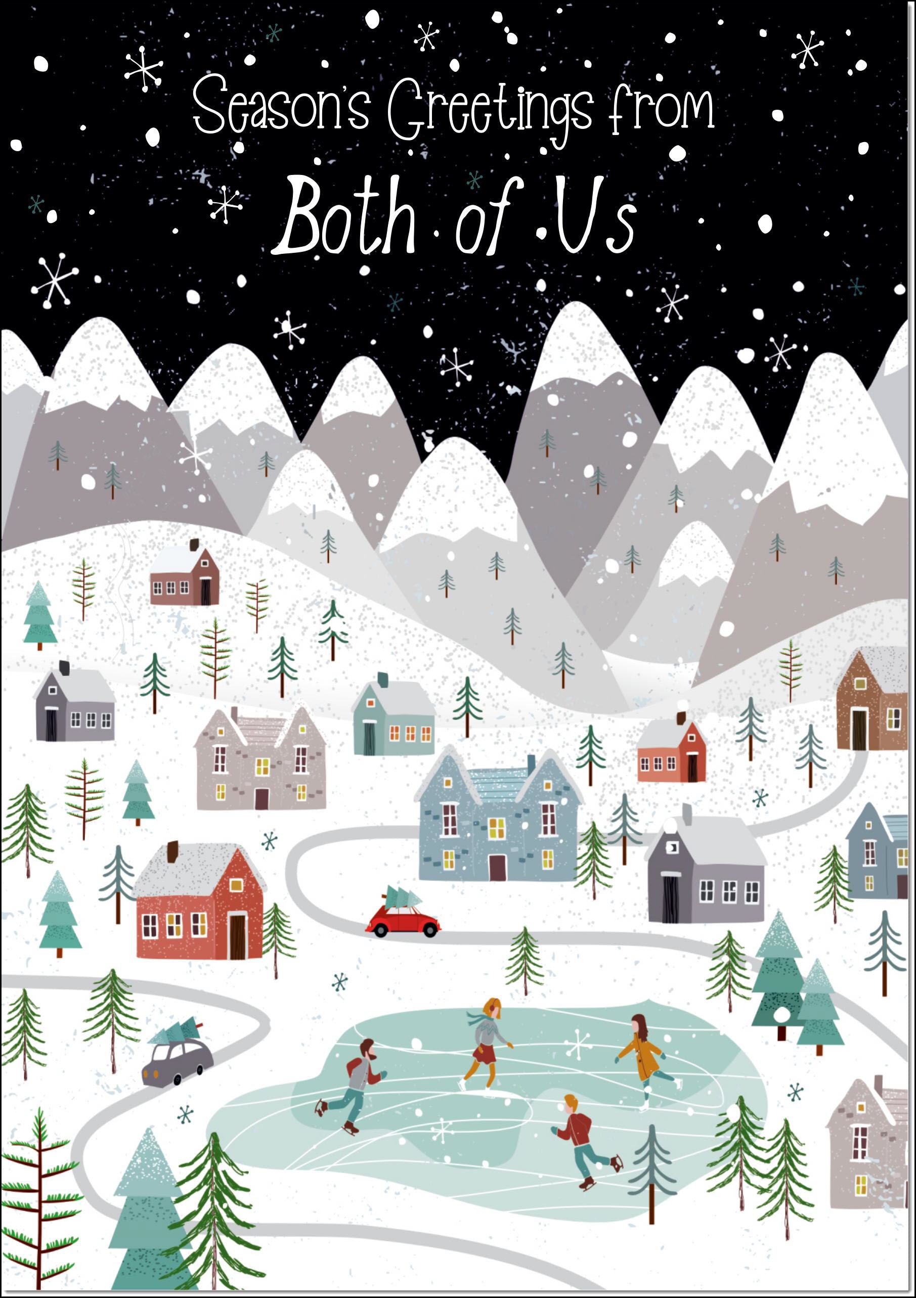 From Both Of Us Christmas Card Mountain Scene In Snowy Village