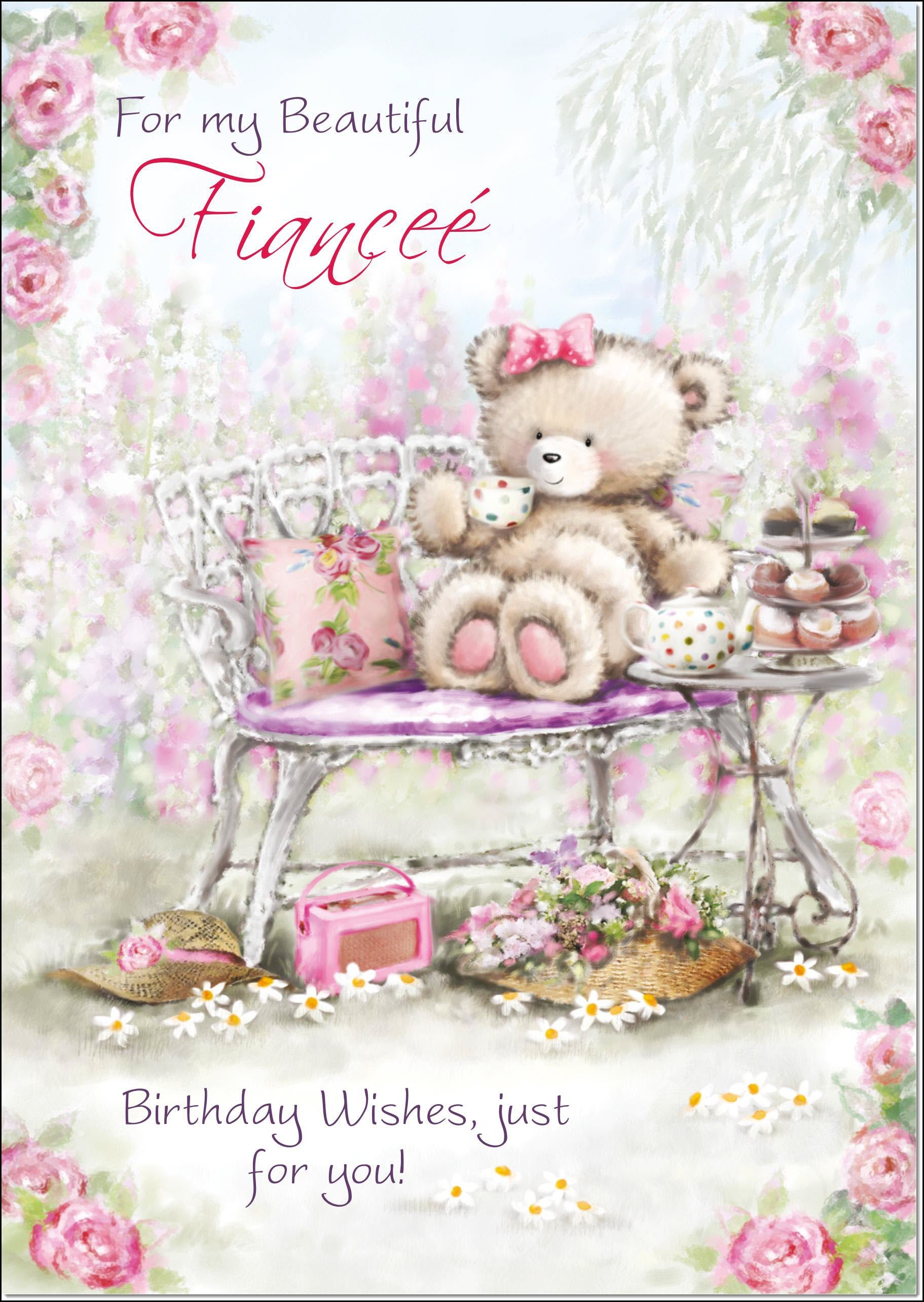 Fiancee Birthday Card Cute Teddy's Afternoon Tea