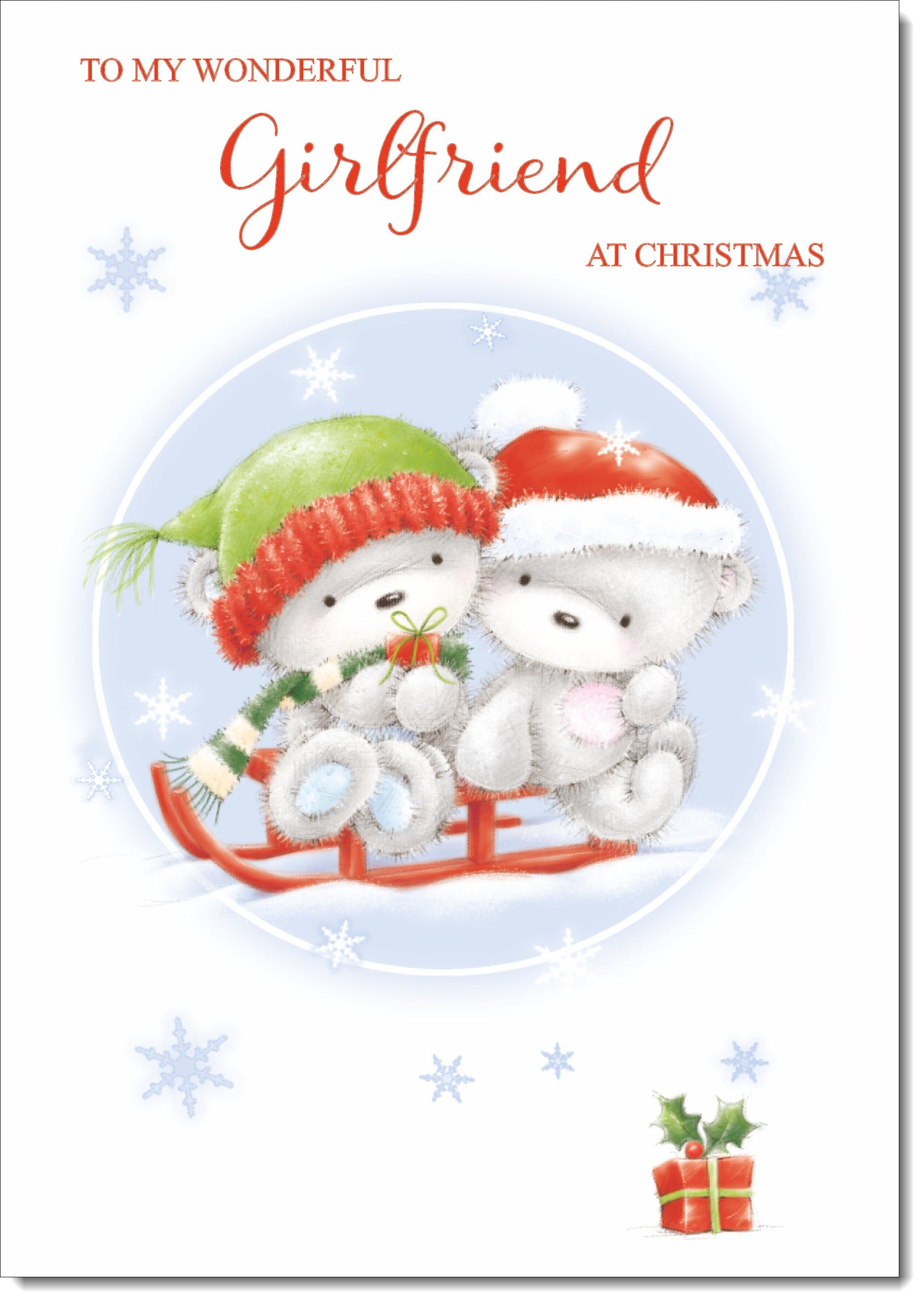Girlfriend Christmas Card Cute Bears on Sled